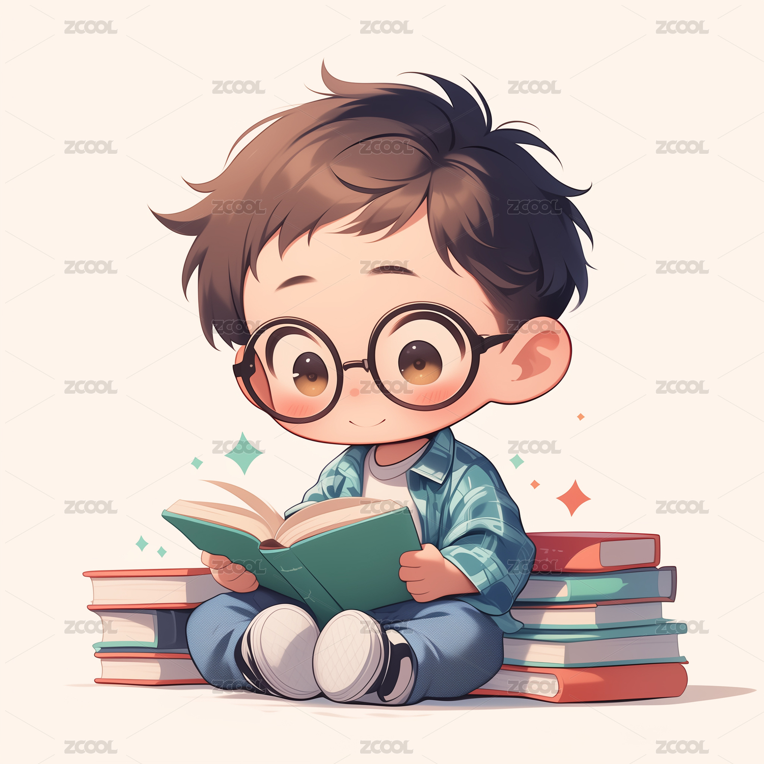男孩,卡通,阅读,学习,插画,儿童,书本,知识,教育,可爱