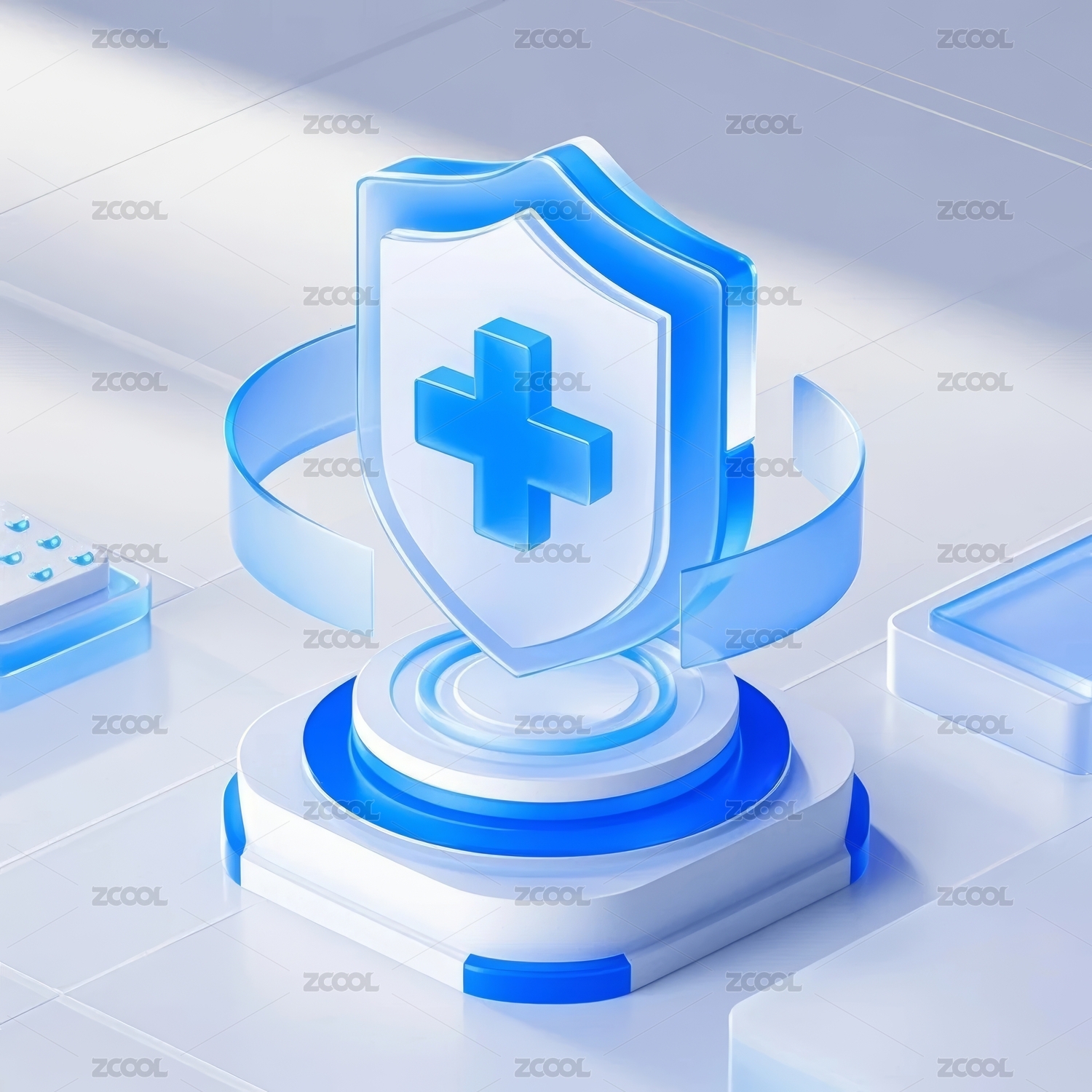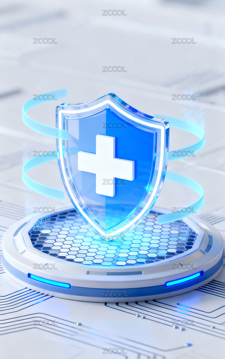 蓝色商务科技3D渲染盾牌图标主视觉背景