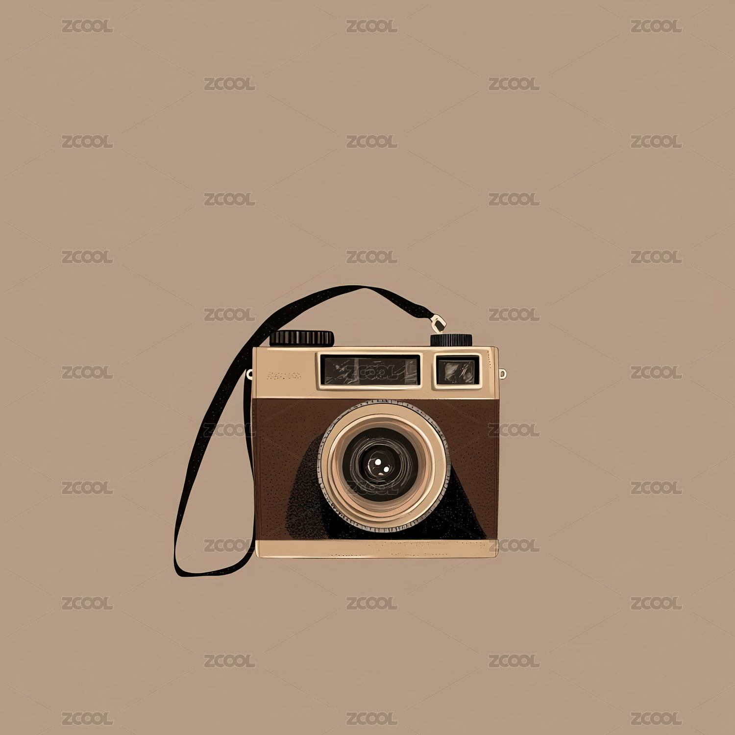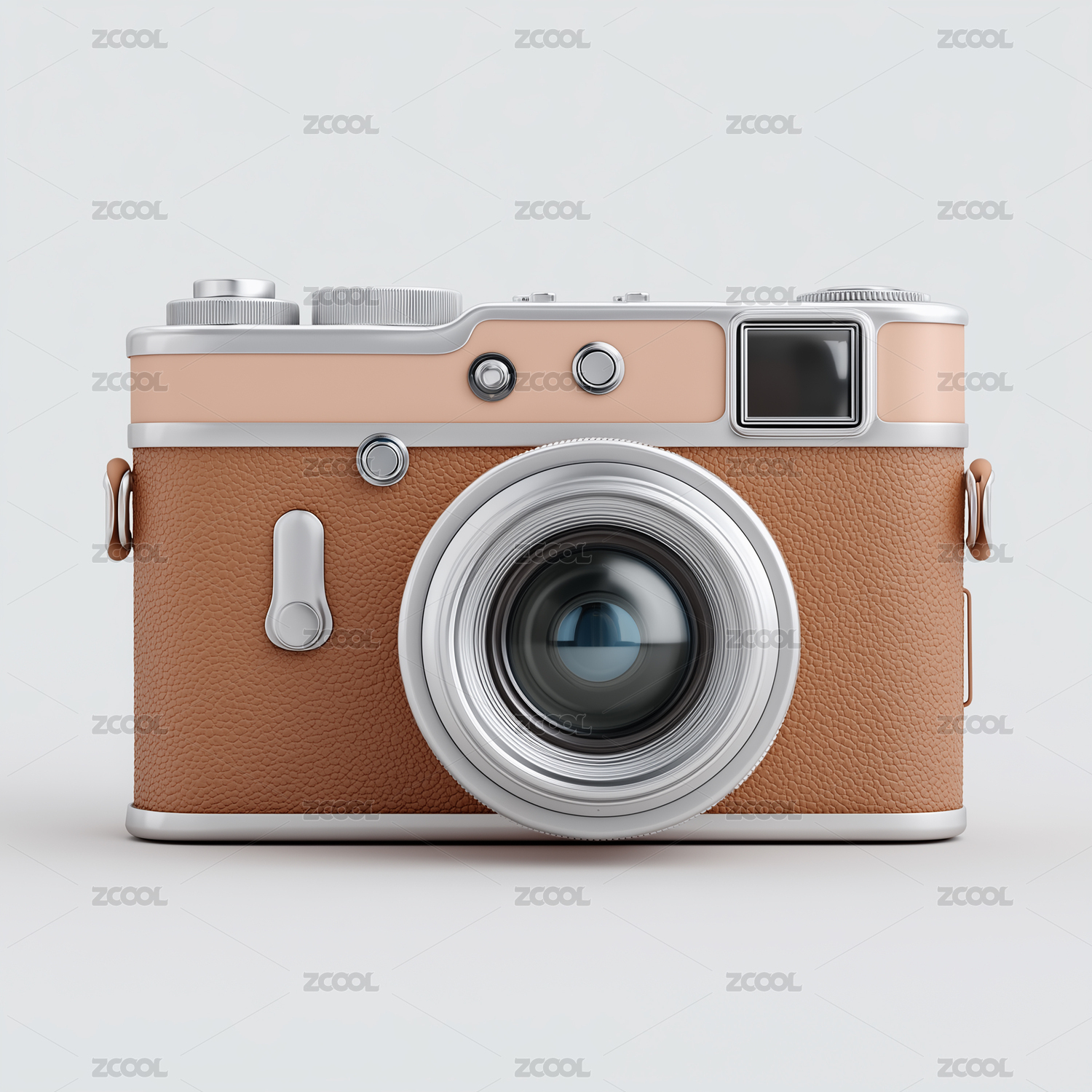 复古相机,相机,镜头,快门按钮,平面背景,纯色背景,静物场景,静置,摆放,皮革纹理