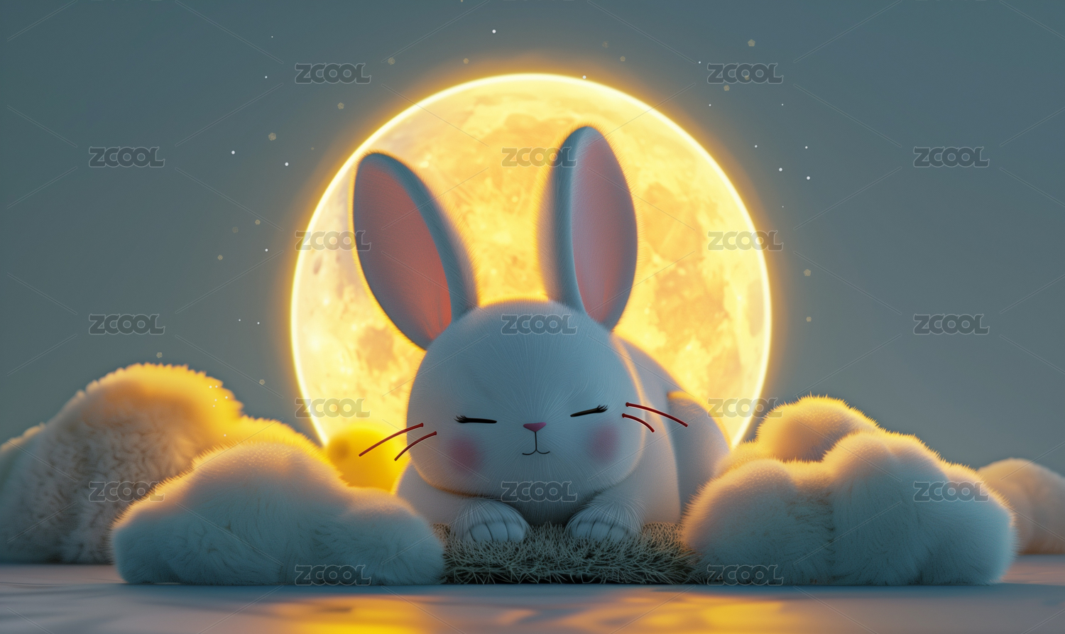 可爱的兔子在云朵上睡觉梦幻般的背景