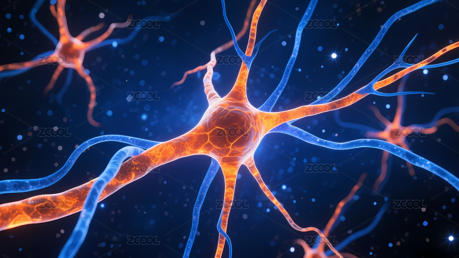 橙蓝线条构成复杂神经元