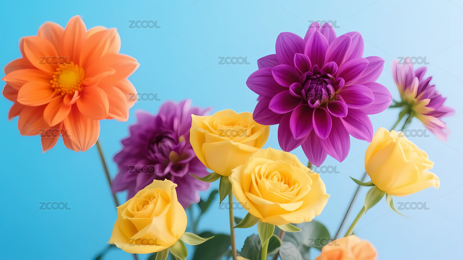 黄色,背景,粉色,花朵,自然,白色,色彩,浅蓝,花束,叶子