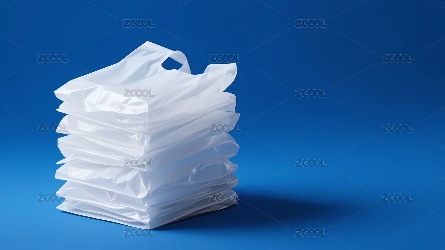 蓝色,背景,白色,物体,简洁,颜色,明快,堆叠,塑料,袋子