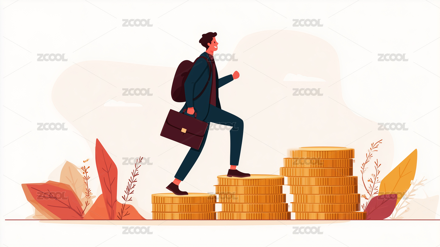 背景,财富,插画,金币,商人,成功,增长,黄金,硬币,攀登