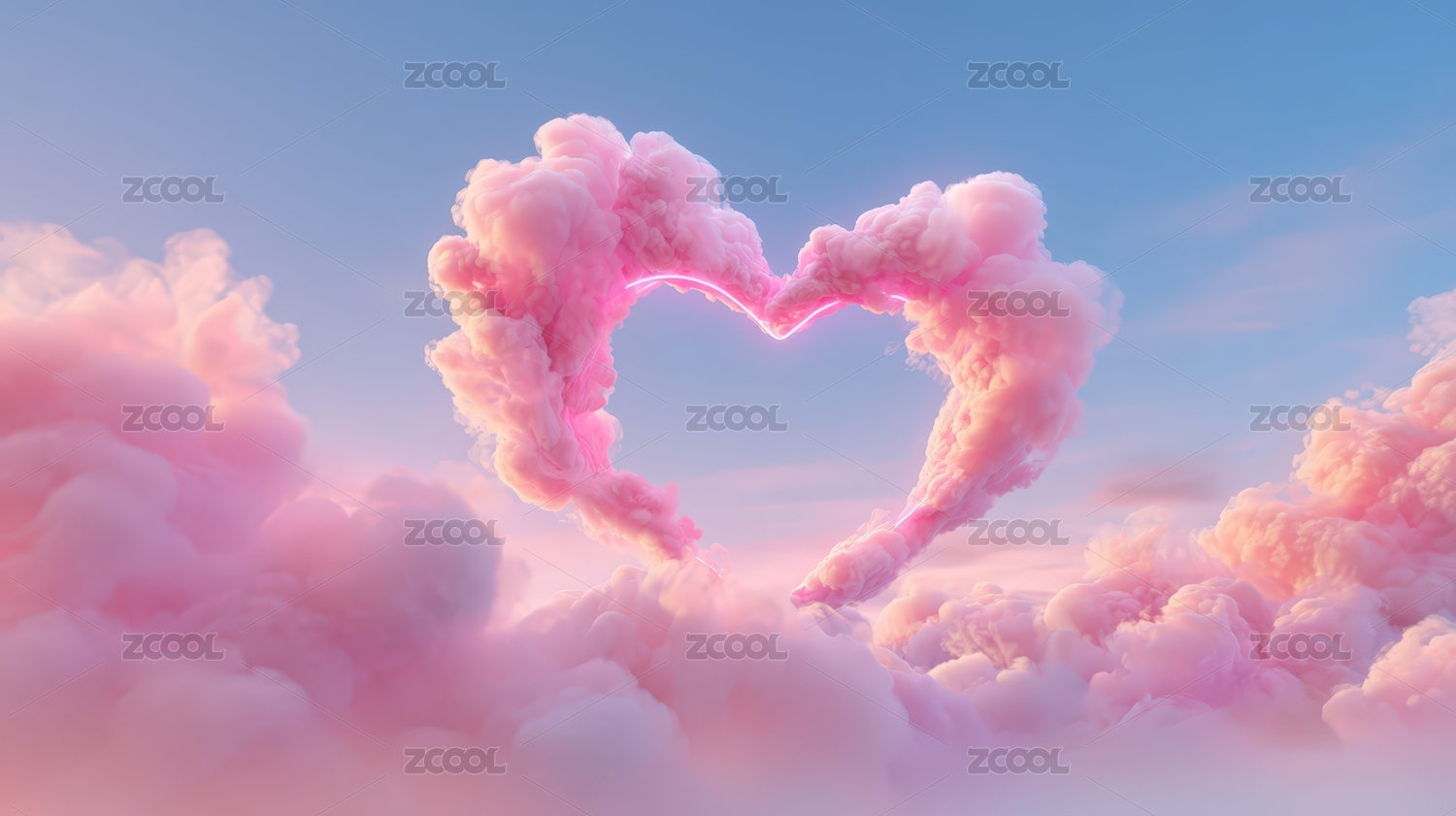 光线,色彩,梦幻,视觉,自然,云朵,心形,蓝天,飘浮,粉色