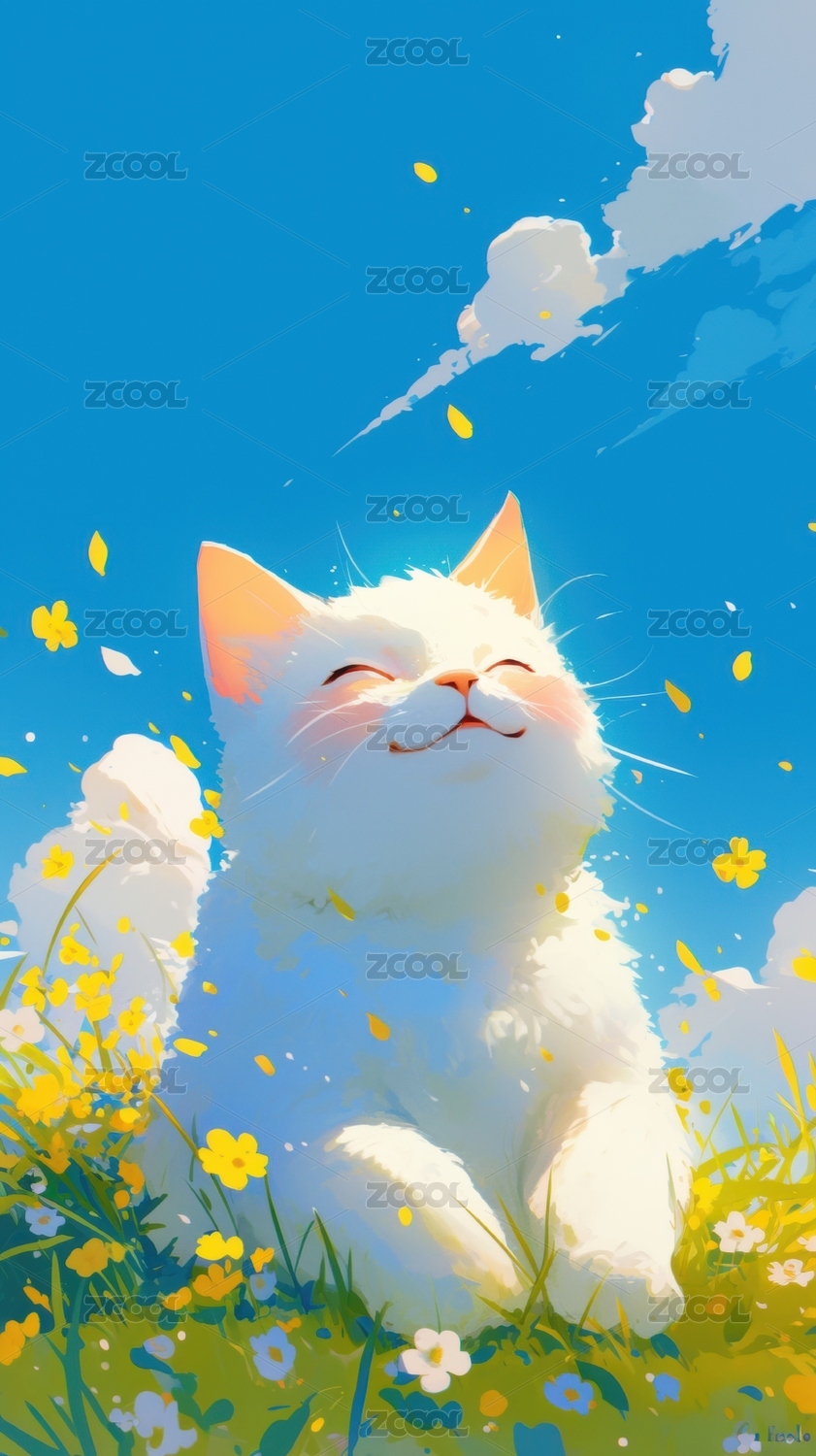 阳光下的白猫