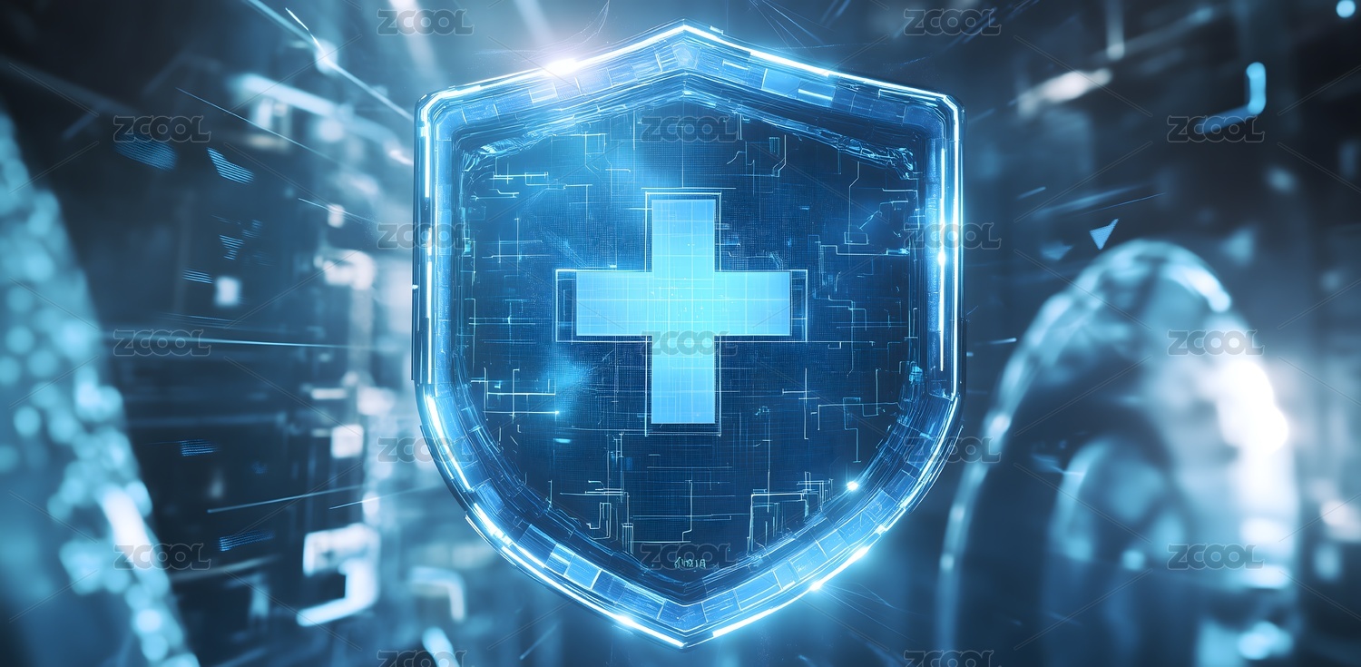 蓝色盾牌上有医疗十字图标
