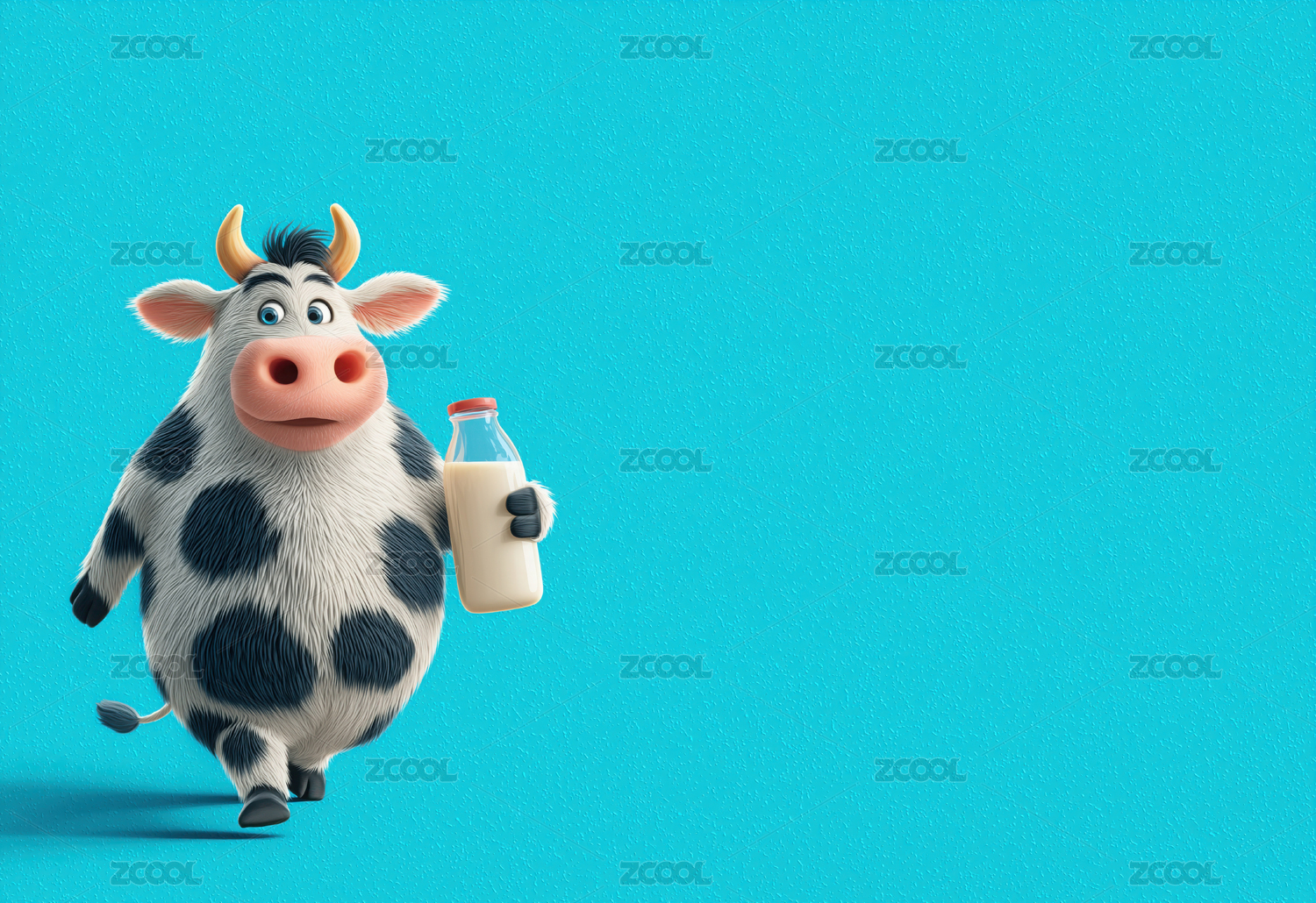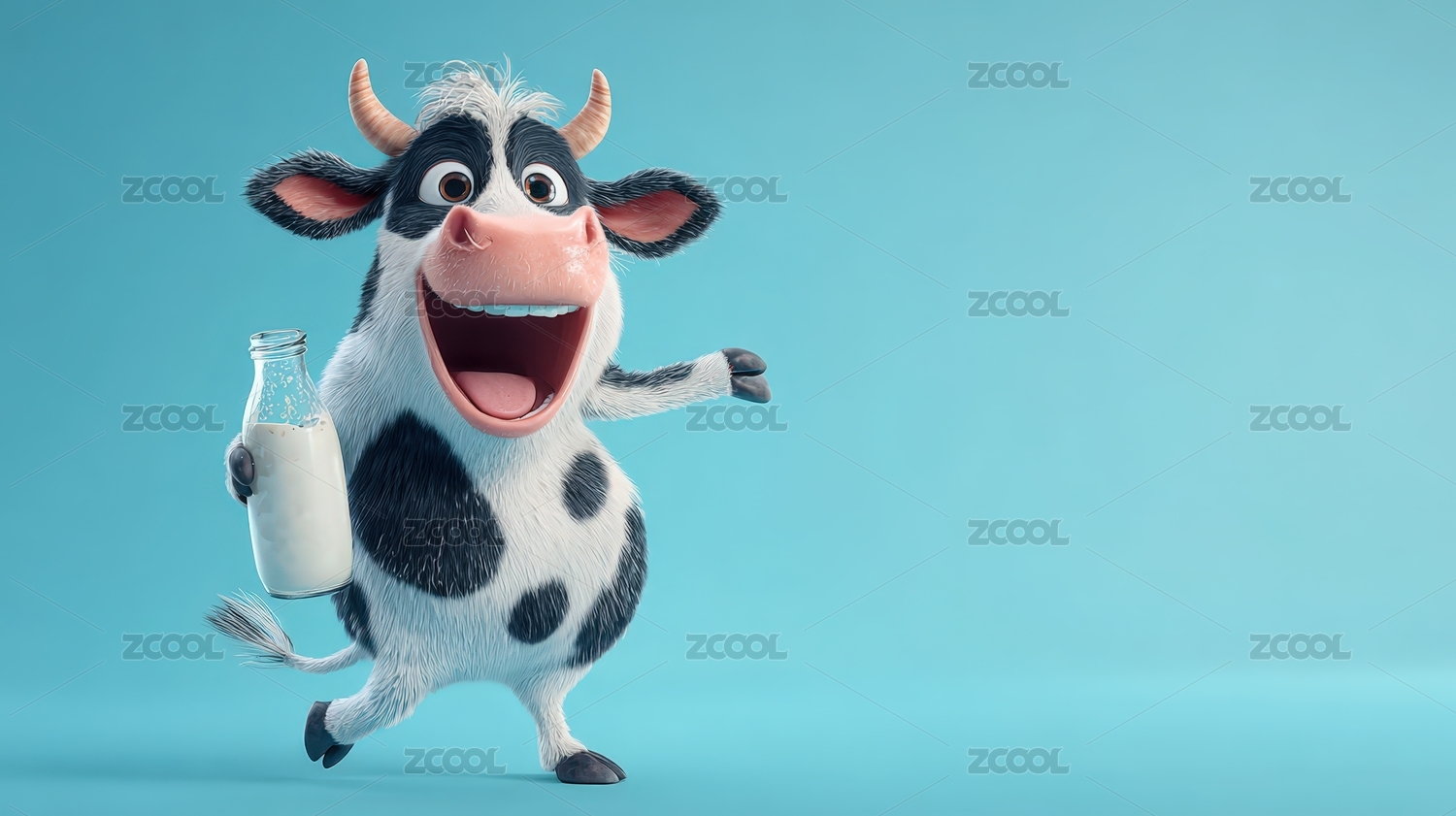 背景,蓝色,物体,可爱,萌趣,卡通,牛,手持,笑容,尾巴