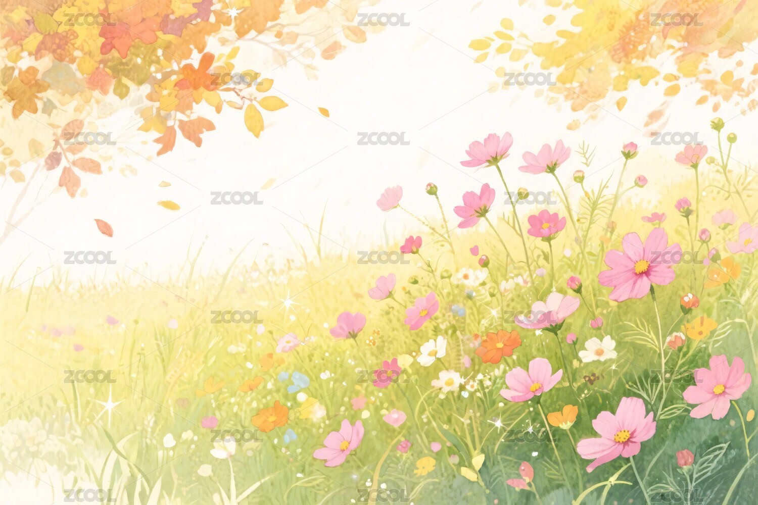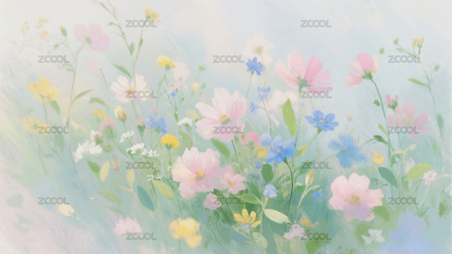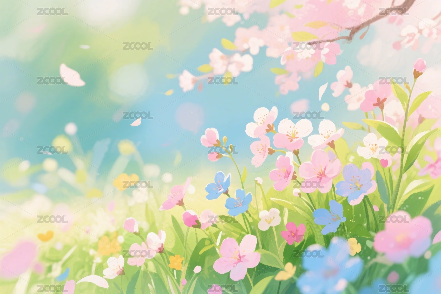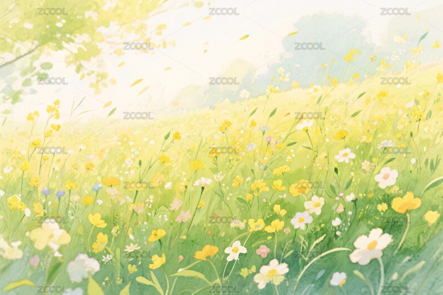 蝴蝶,花朵,花丛,绿色背景,清新,自然,唯美,插画,春天,浪漫