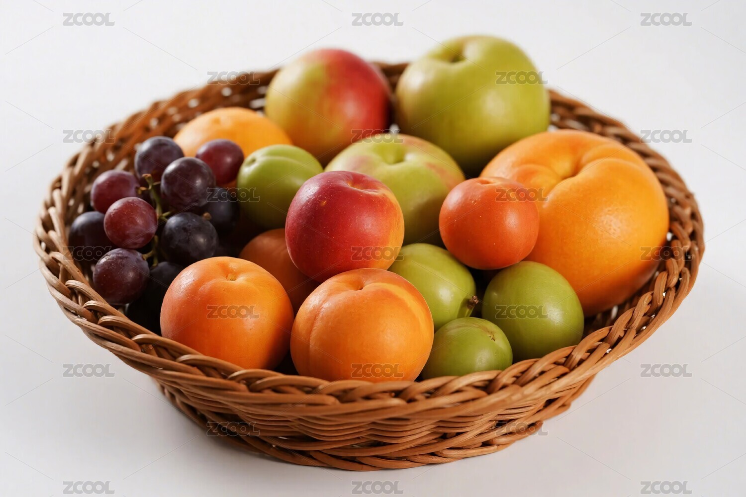 果篮,水果,苹果,葡萄,橙子,白色,藤编,真实摄影,静物,篮子