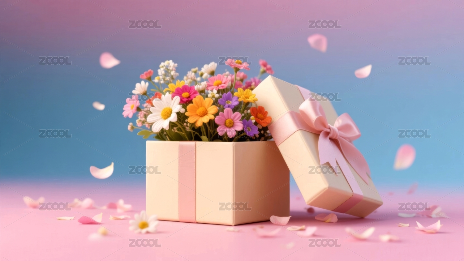 粉色礼盒花朵背景