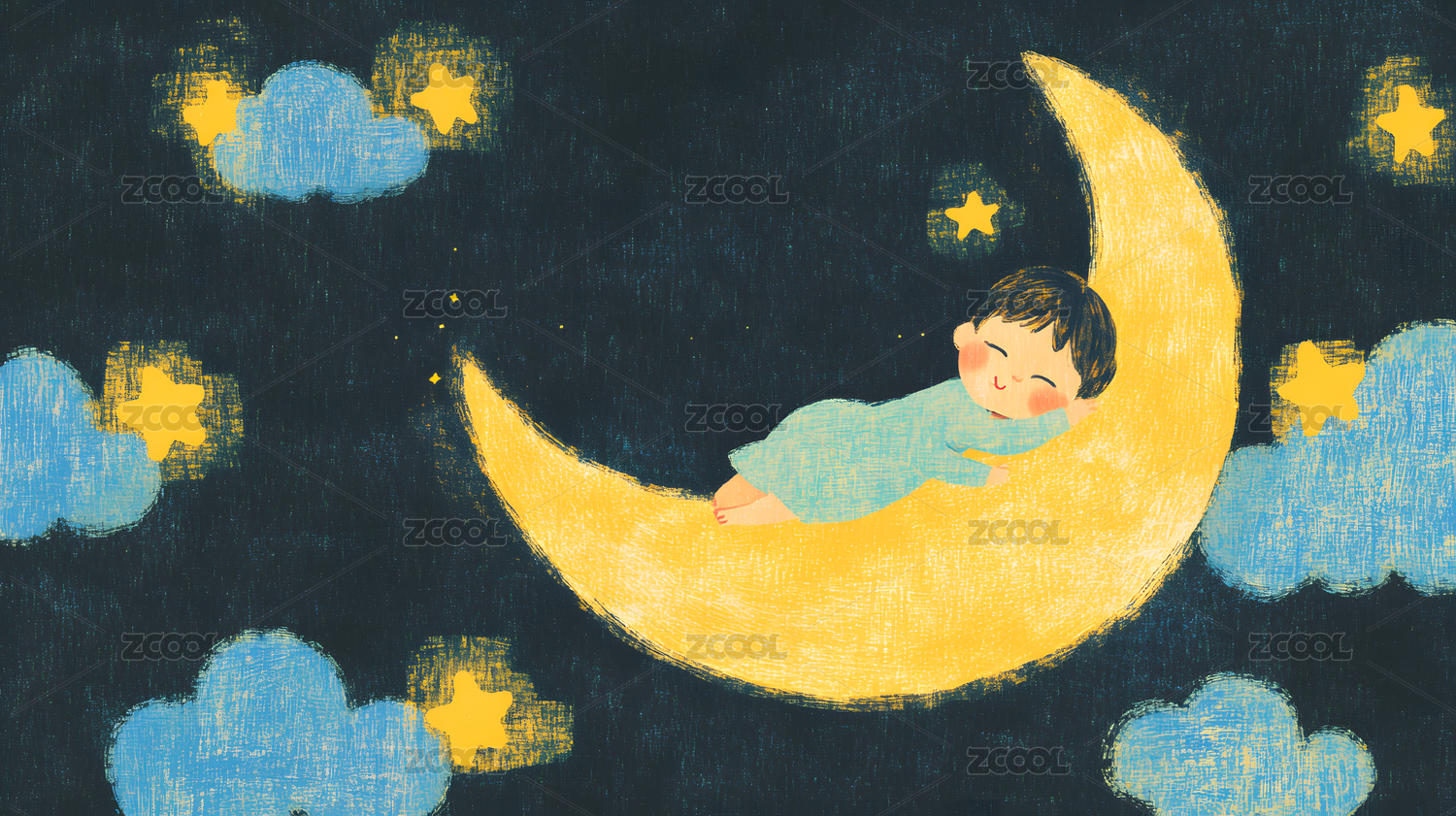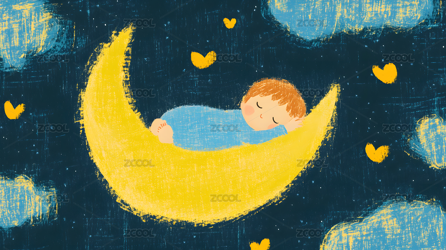 手绘蜡笔儿童睡眠插画