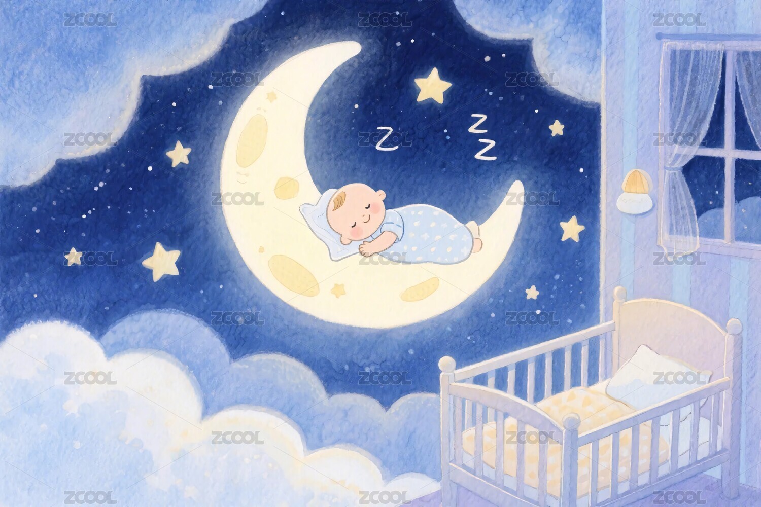 婴儿月夜熟睡插画