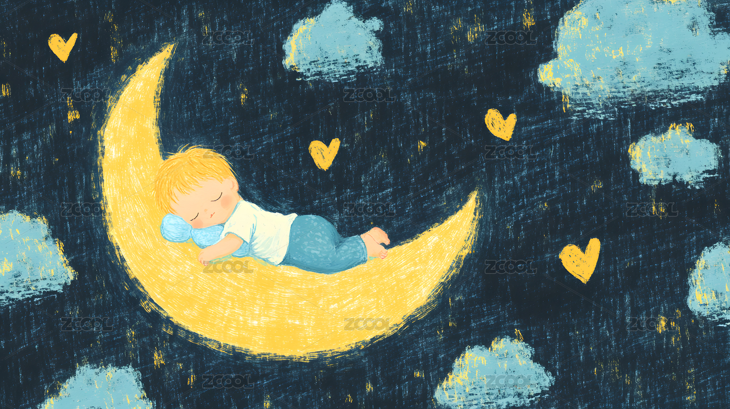睡在月牙上的小孩