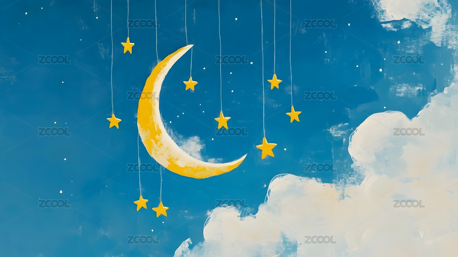 梦幻星空下的月亮和云朵