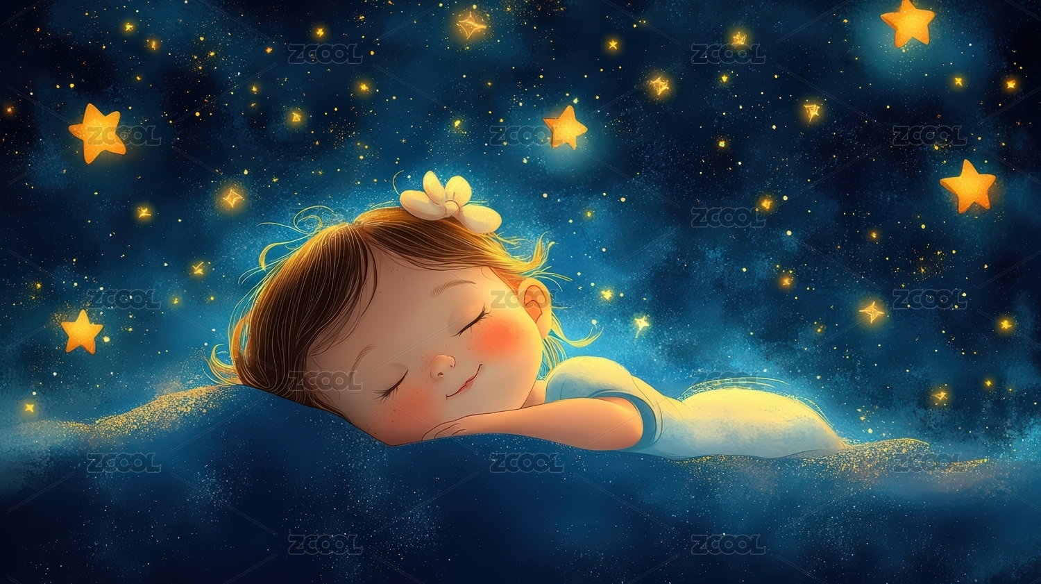 星空中安睡的女孩