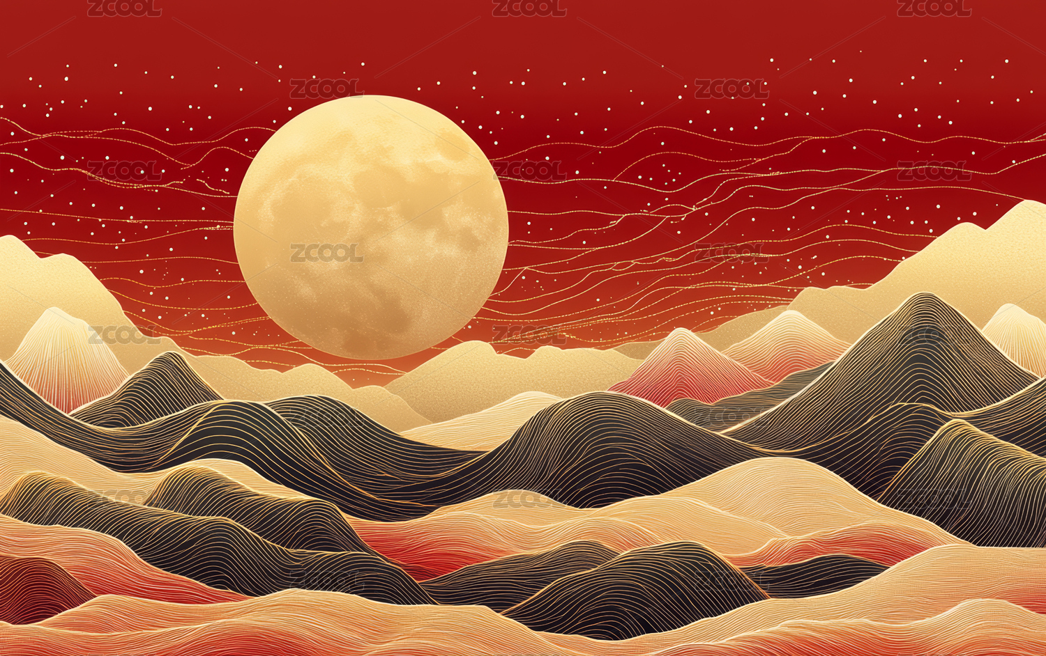 国风自然风景商务插画