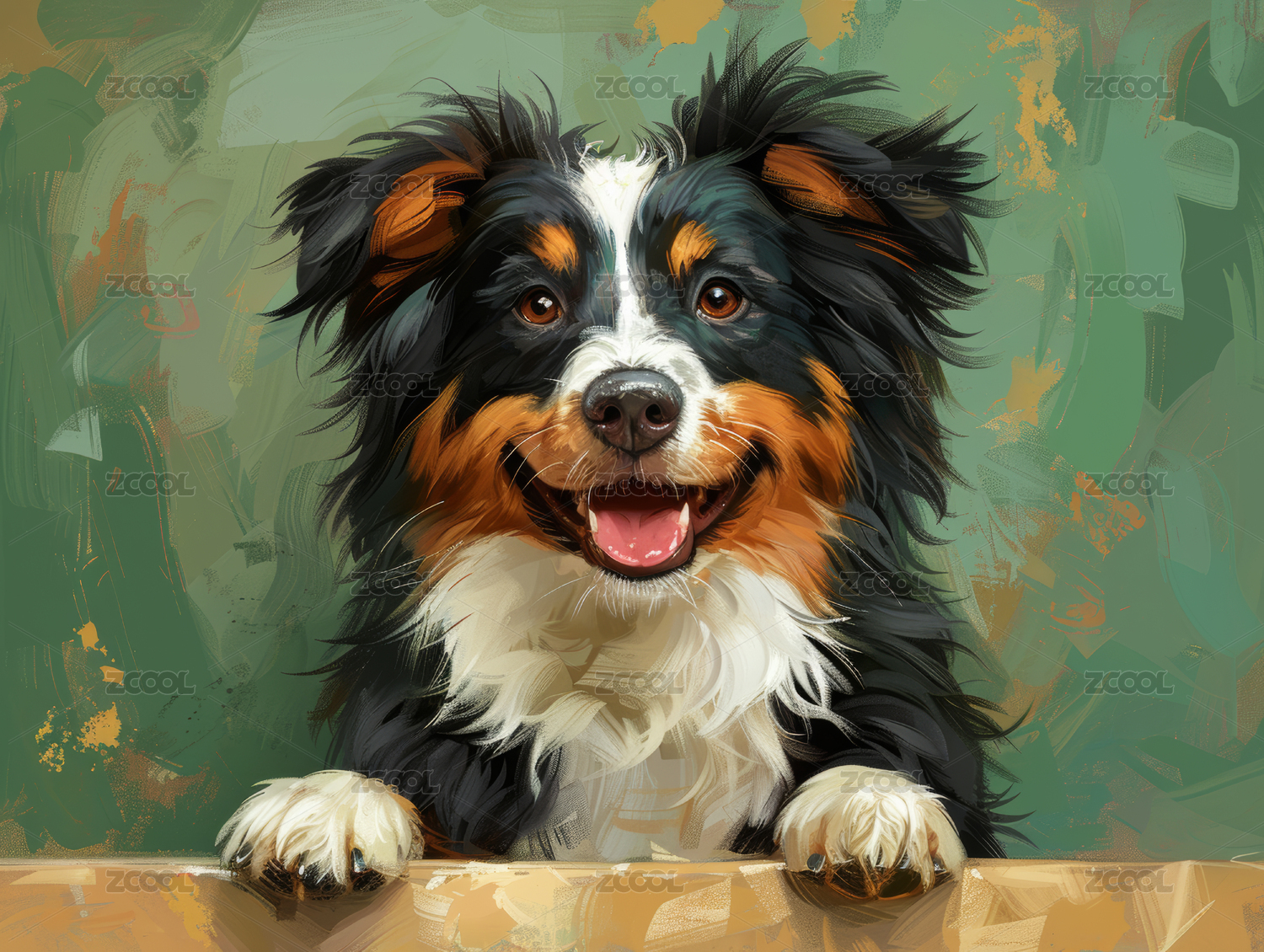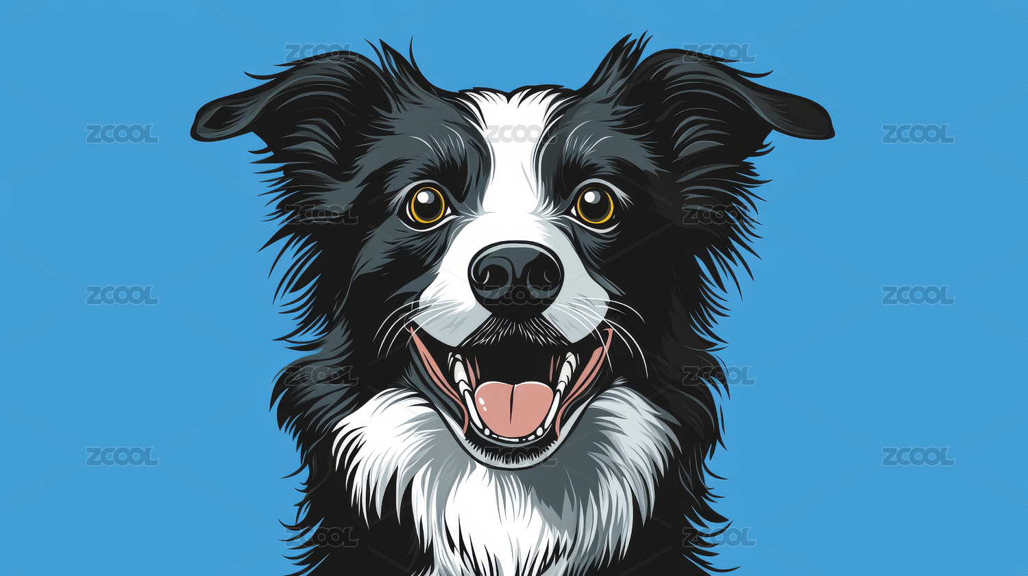 澳大利亚牧羊犬,卡通,插画,动物,头像,宠物,黑白,面部,图案,可爱