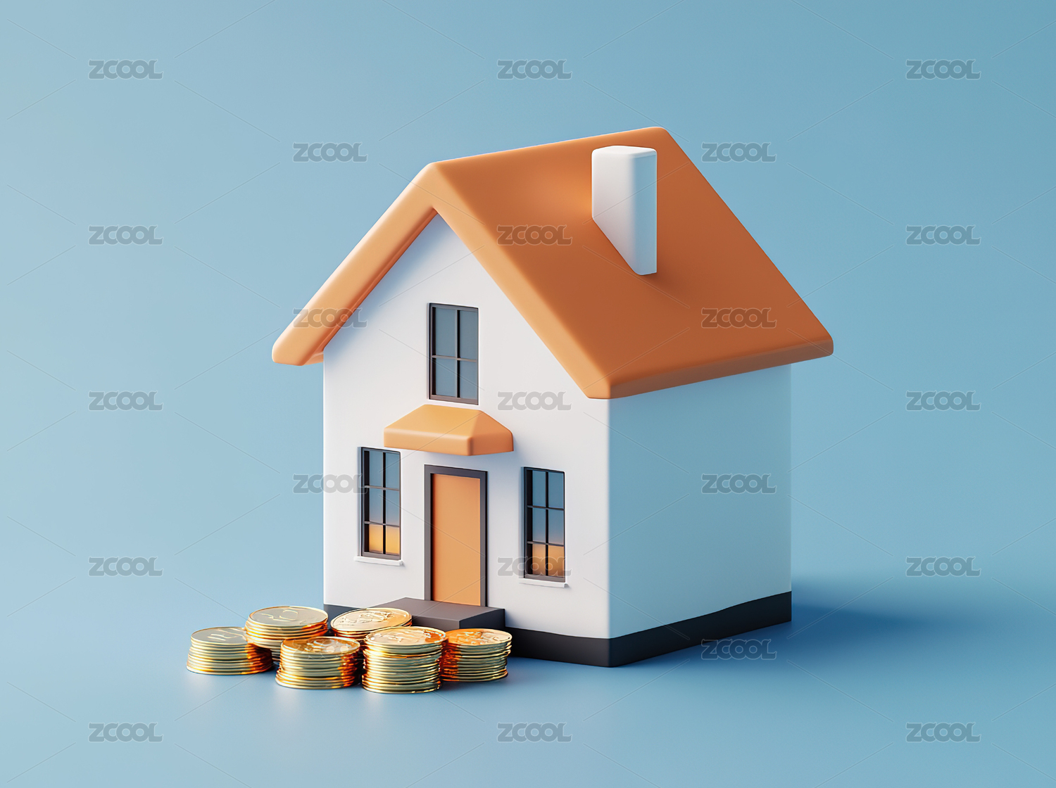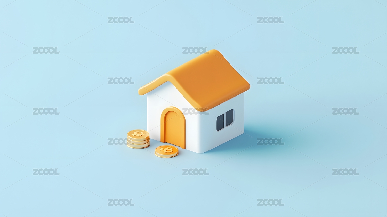 户外,树,生活,场景,未来,小房子,金币,堆叠,模型,蓝屋顶