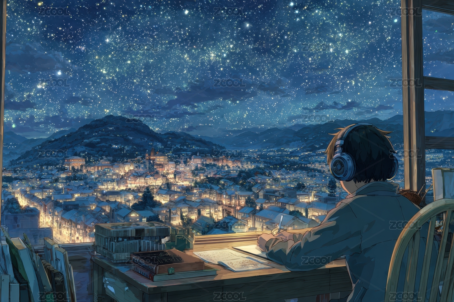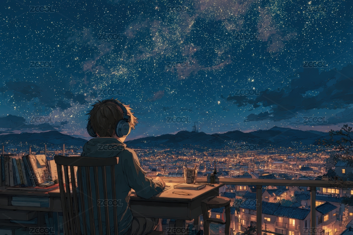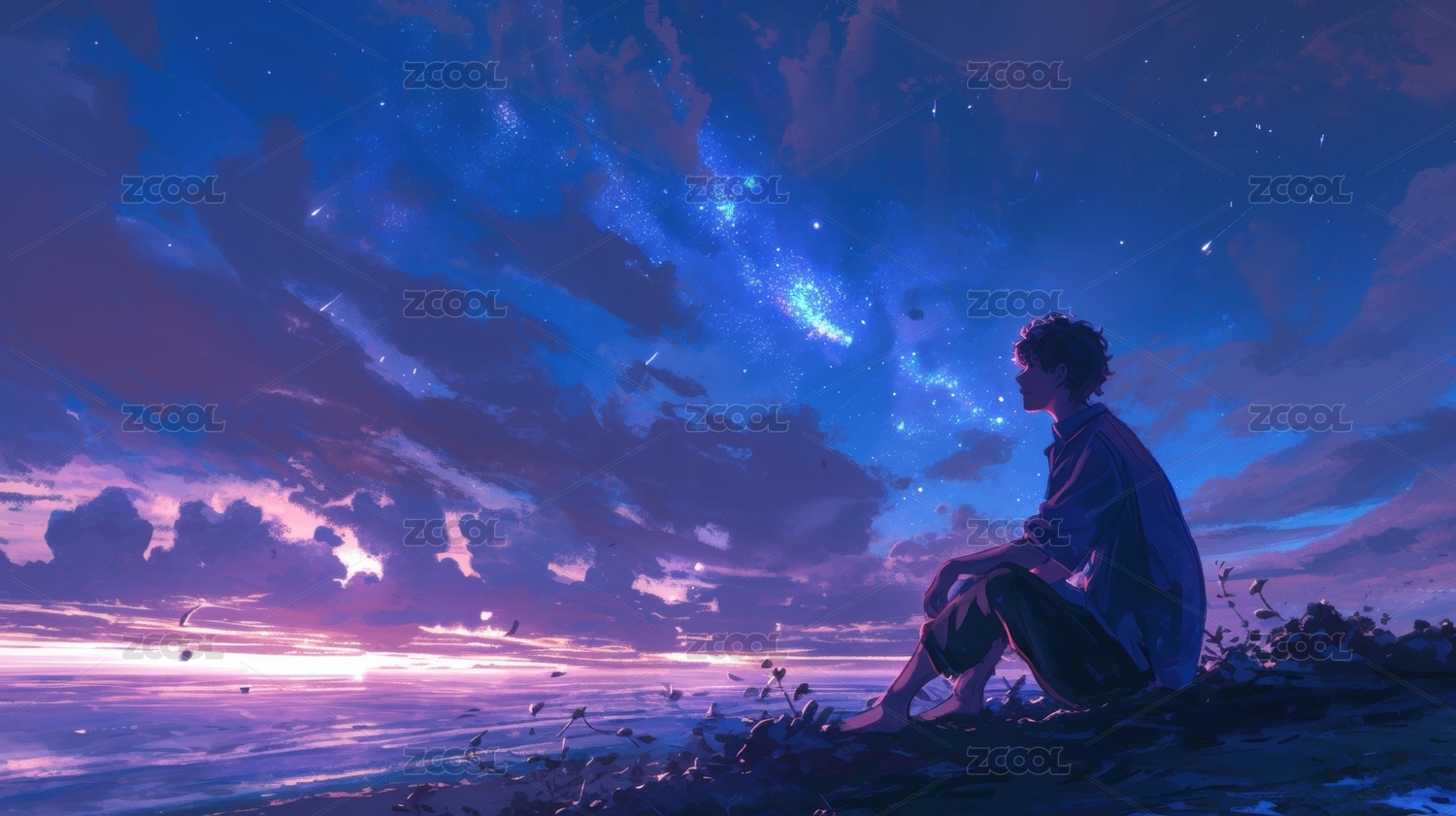 灯光,氛围,天空,自然,女孩,艺术,树木,星空,夜晚,云朵