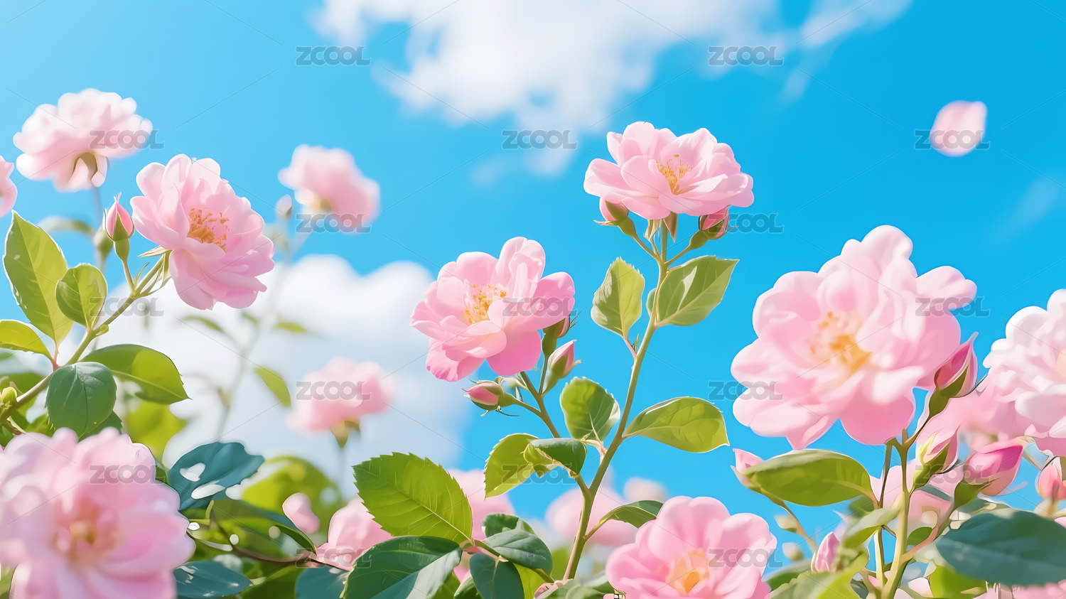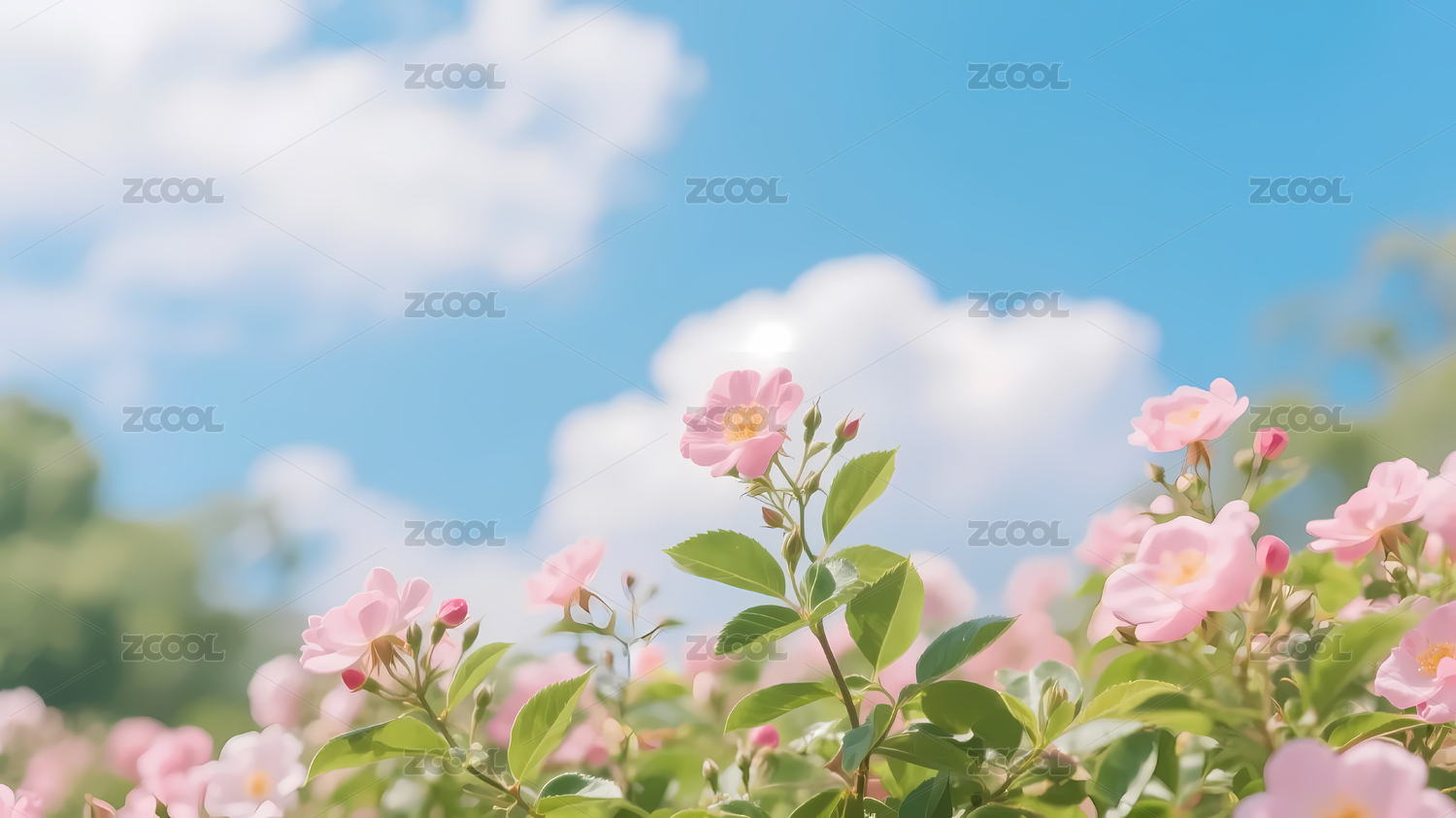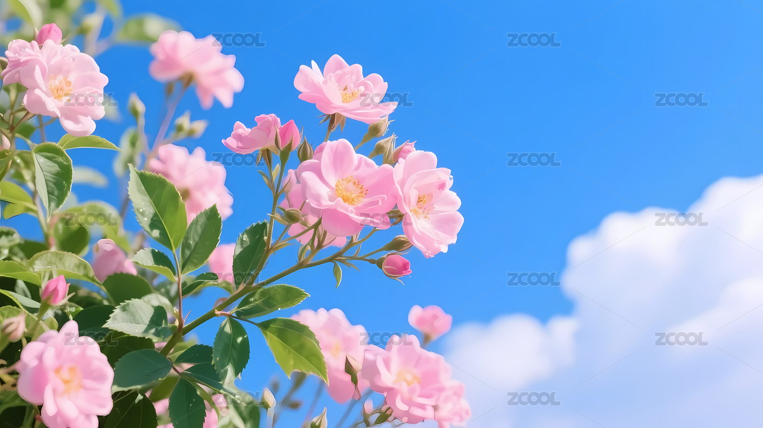 视觉,主体,背景,自然,花朵,鲜艳,粉色,蓝天,白云,清新