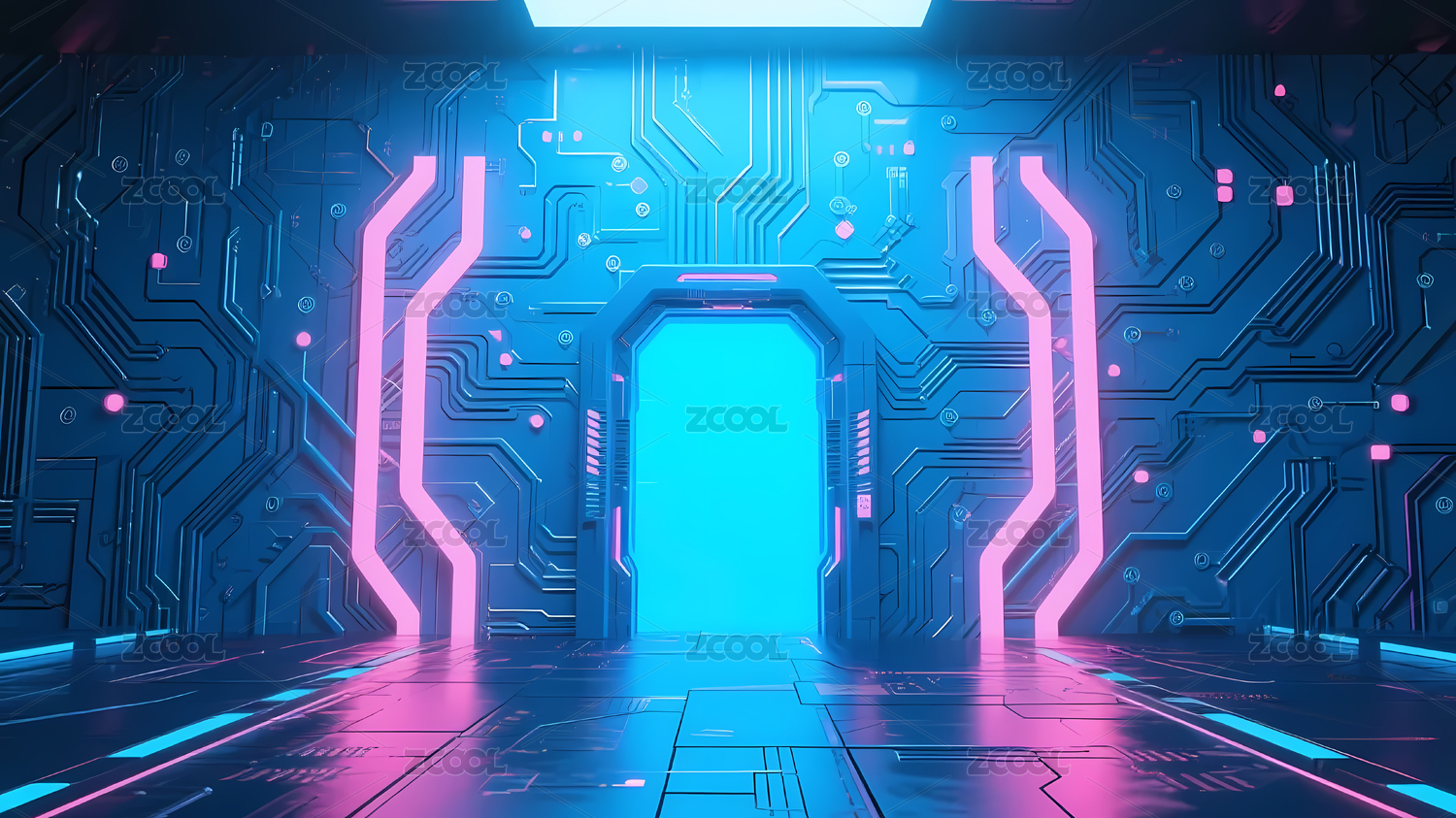 电路板,未来,科技,霓虹,双开门,门框,装饰板,粉蓝色,光芒,深蓝色