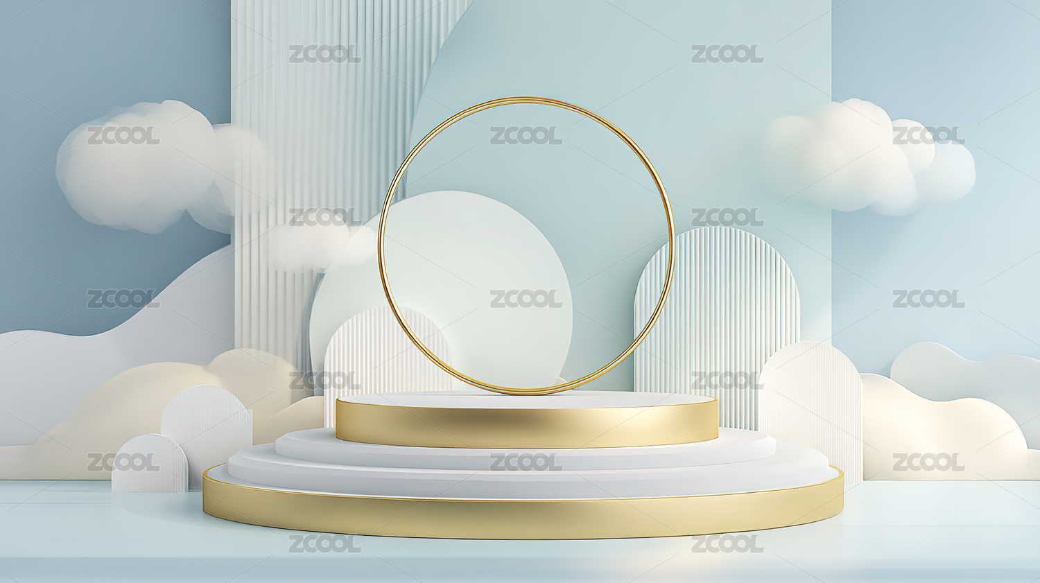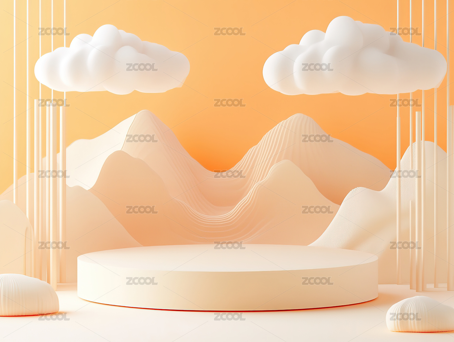 淡黄色抽象云彩电商3D展台