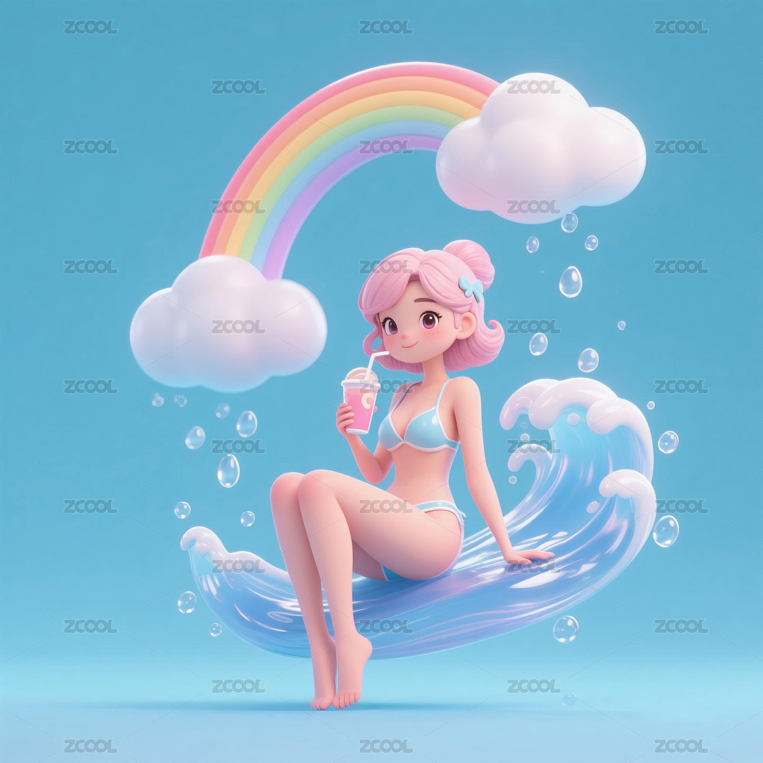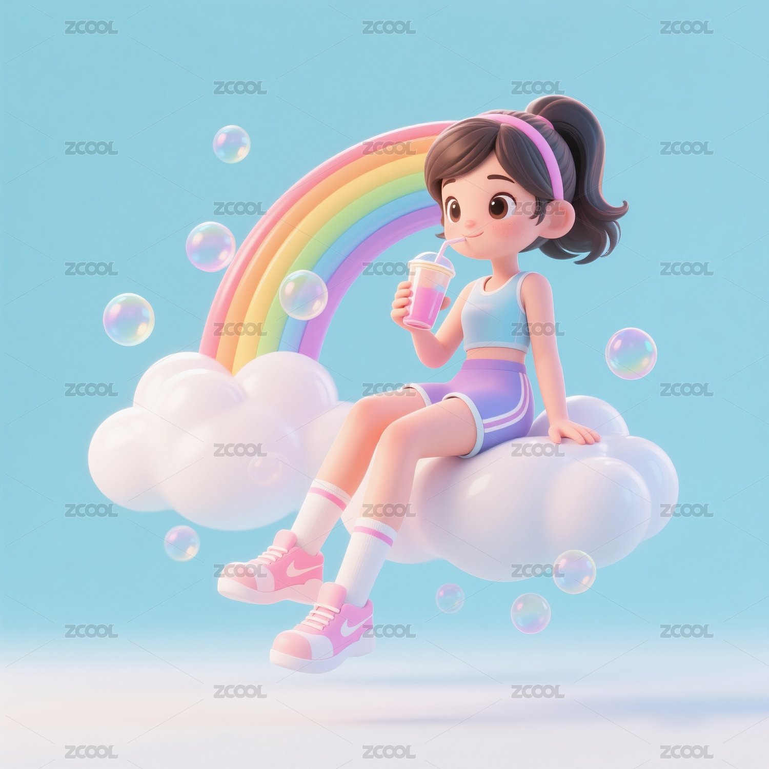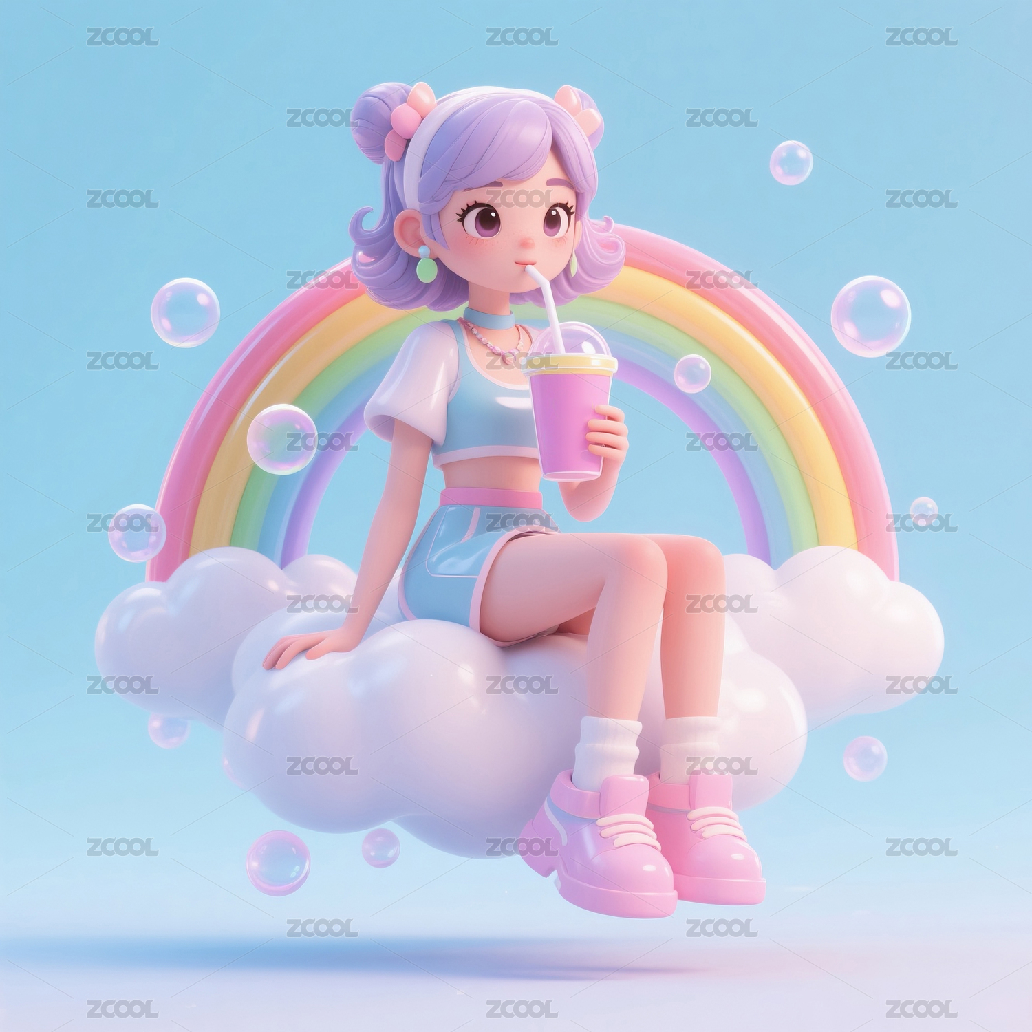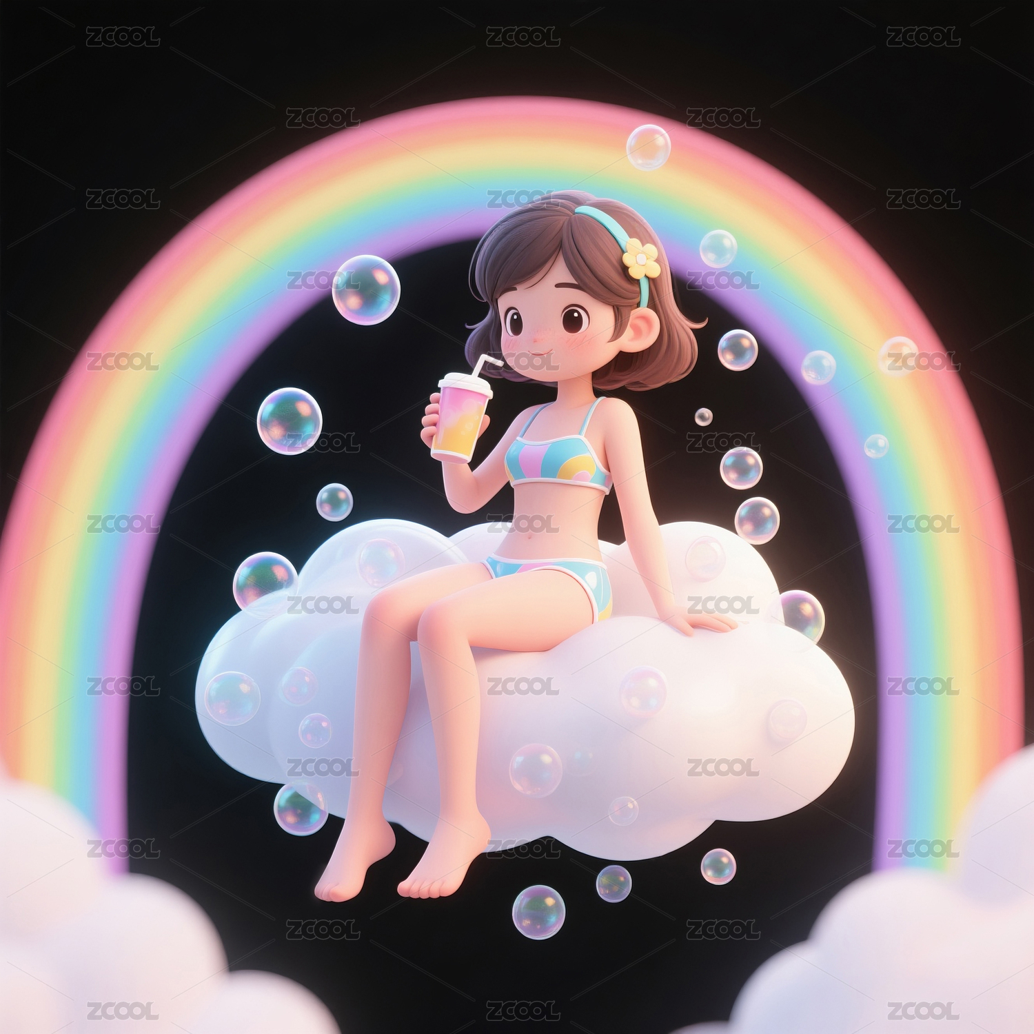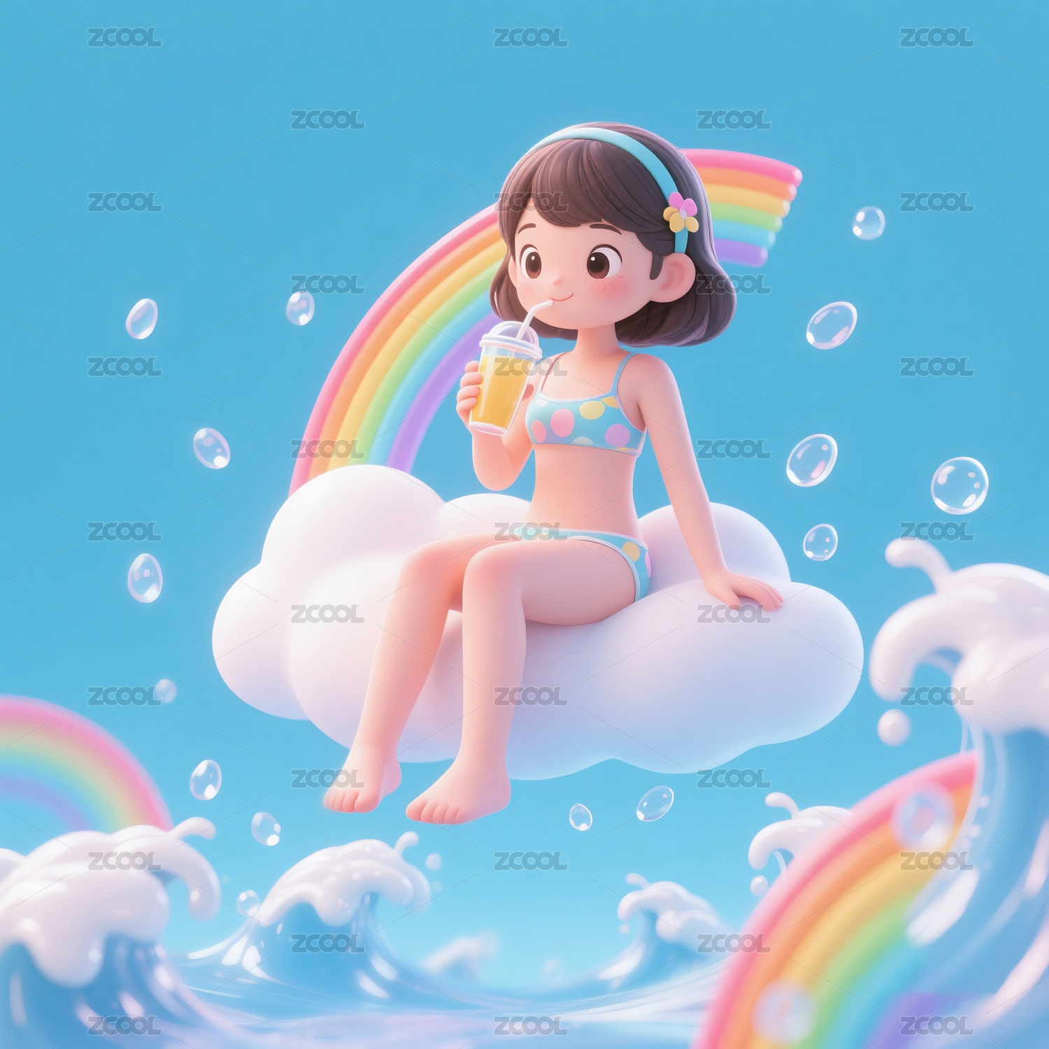 彩虹,云朵,白云,泡泡,可爱,萌萌哒,喝软饮,拿软饮,软饮,水花
