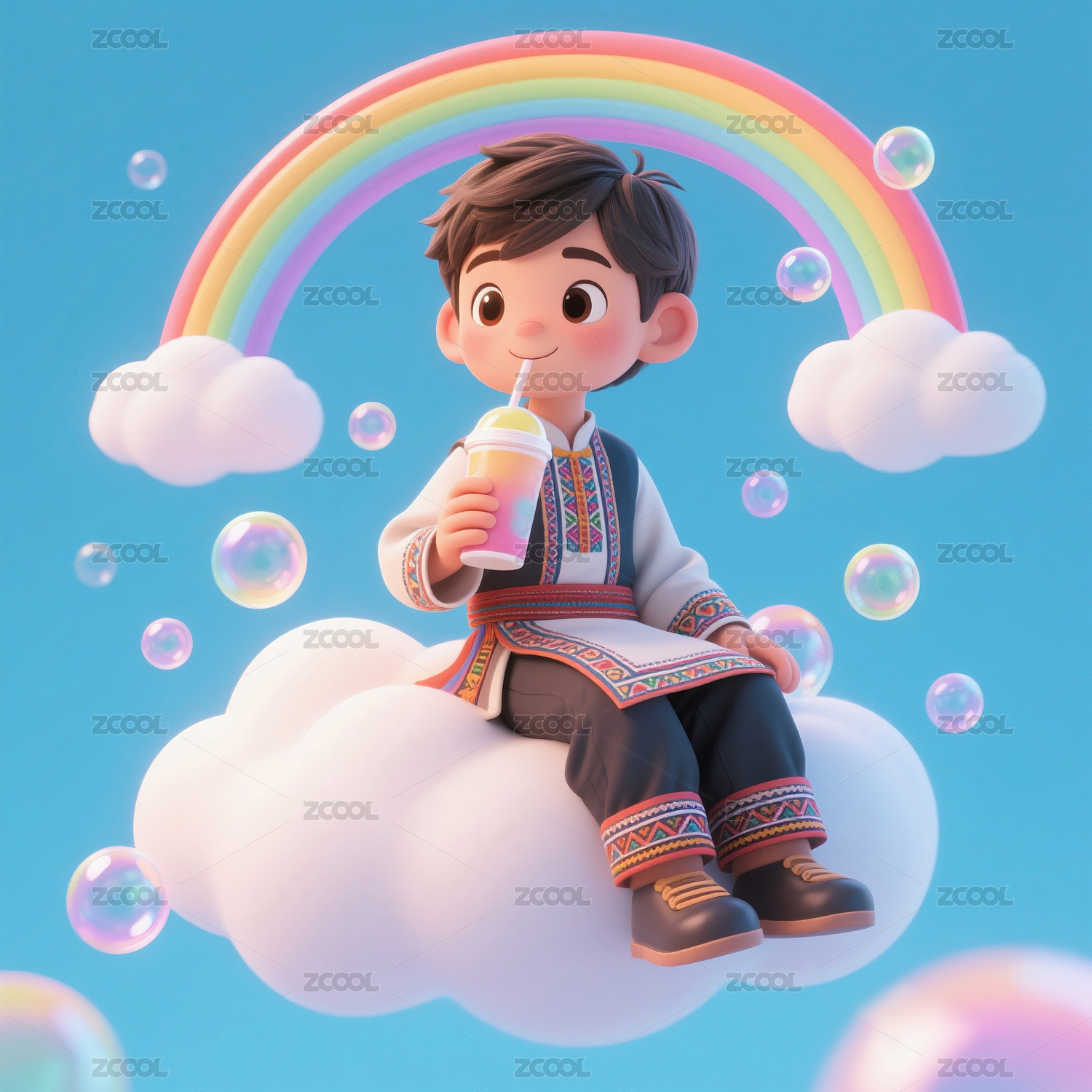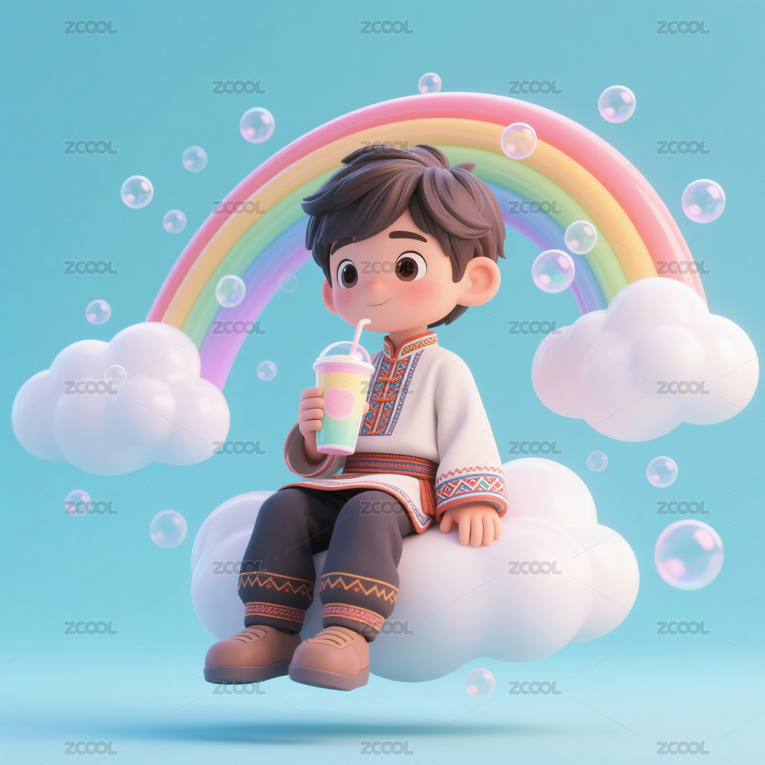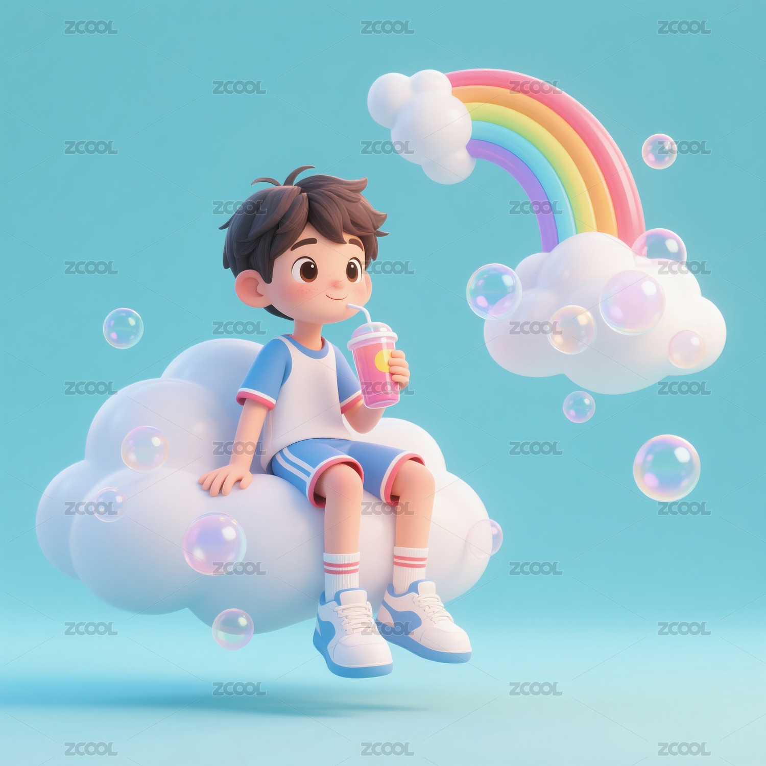 彩虹,云朵,白云,泡泡,可爱,萌萌哒,喝软饮,拿软饮,软饮,男孩子