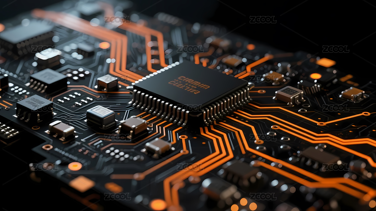 背景,黑色,橙色,电路板,元件,深色,芯片,导线,细节,电子