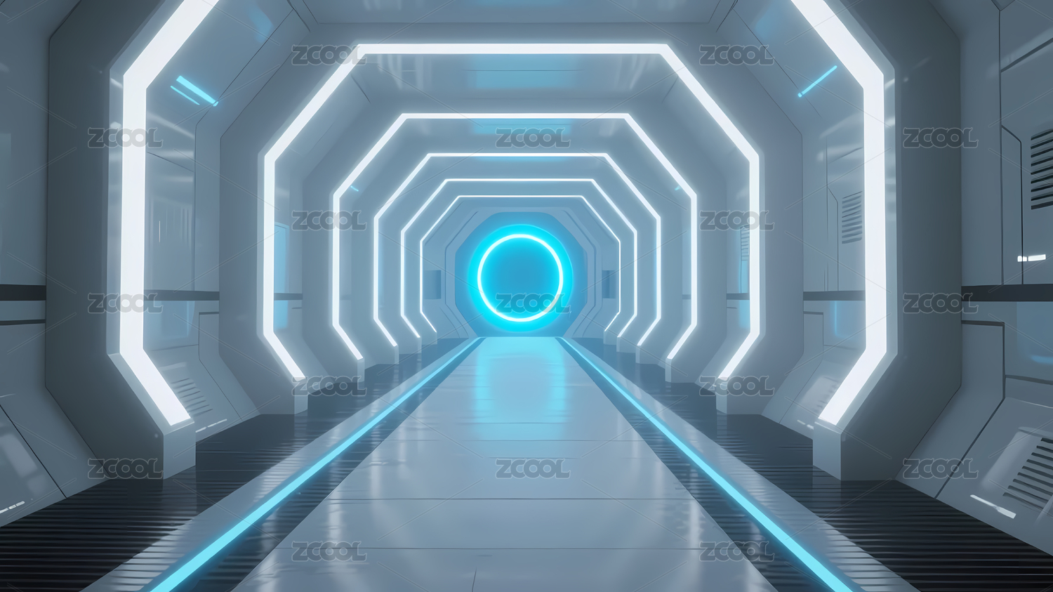通道,白色,狭长,科技,未来,方形,圆形,发光,金属,磨砂