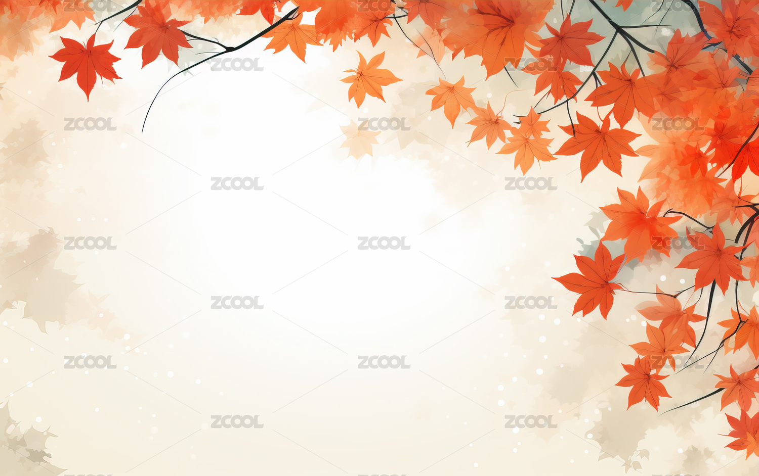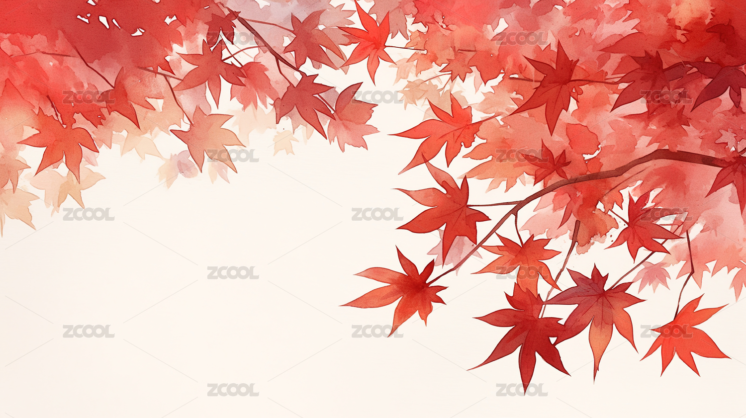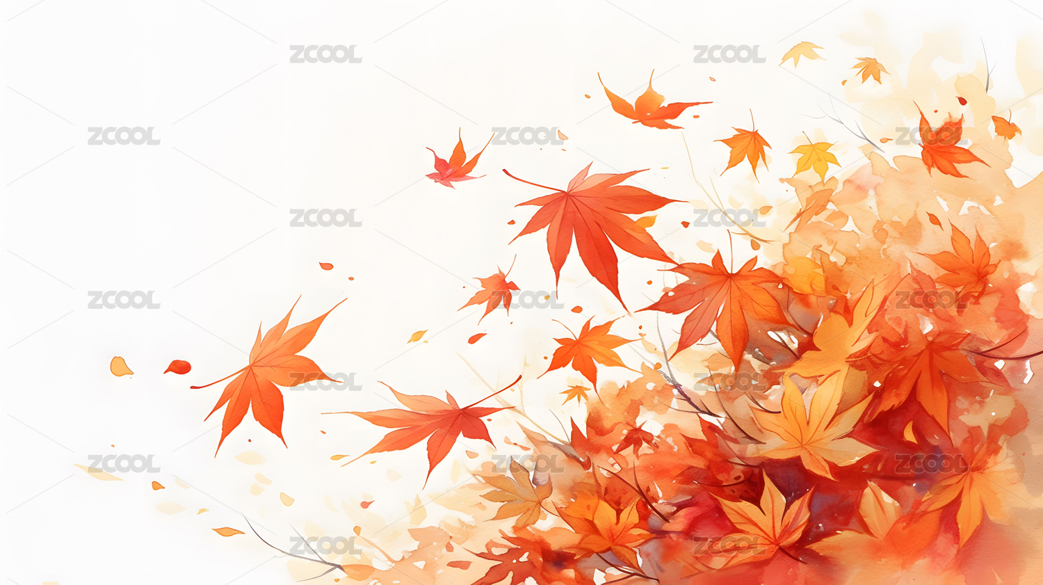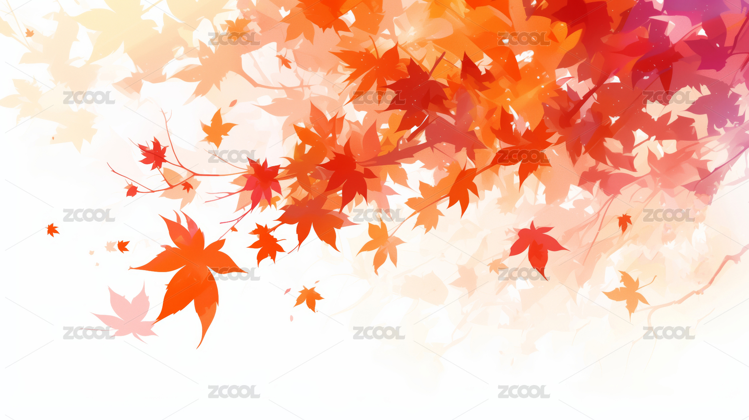秋季枫叶水彩画高清图片