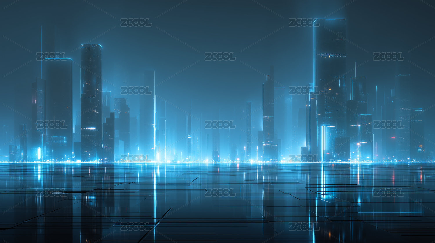 未来,科技,城市,夜景,建筑,光线,反射,抽象,现代化