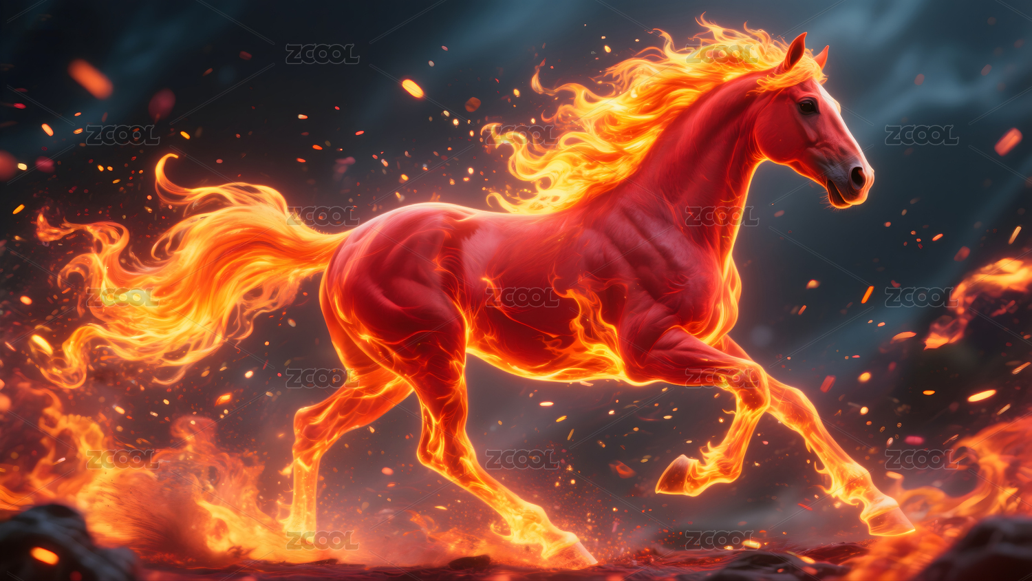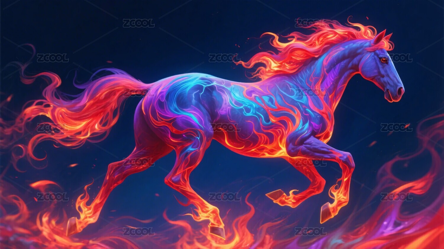 骏马,火焰,奔跑,炫彩,插画,动物,动态,奇幻,绚丽,色彩