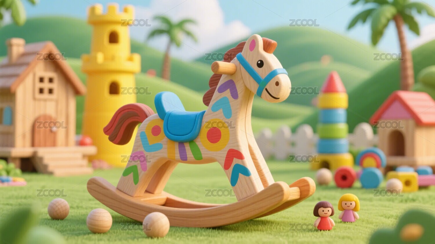 摇马,积木,玩具屋,玩具,儿童房,室内,画面元素,主题,插画,场景