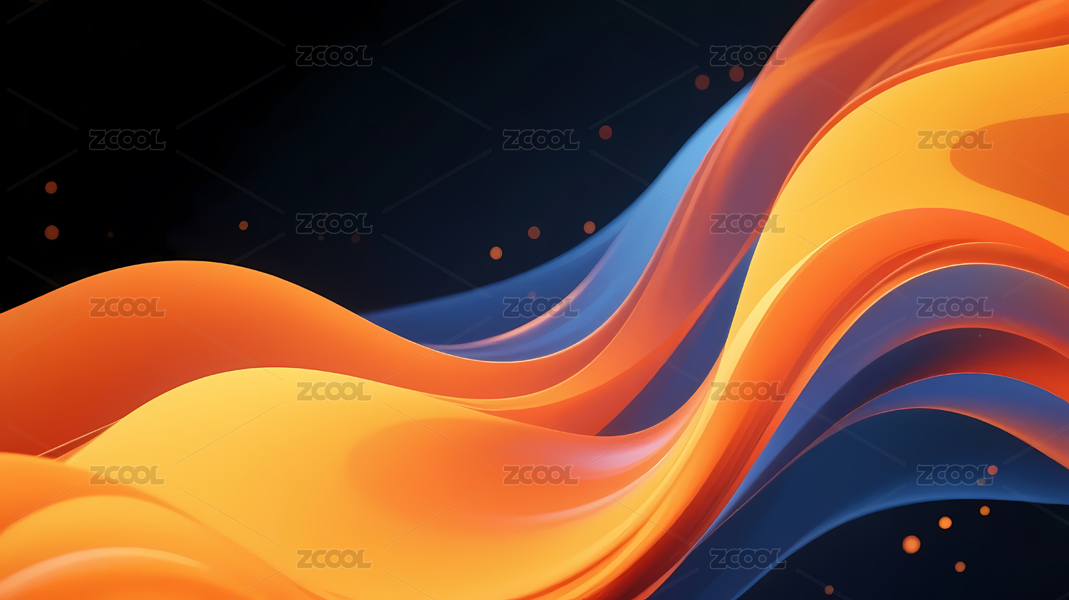 深蓝波浪与金色线条交织的抽象背景