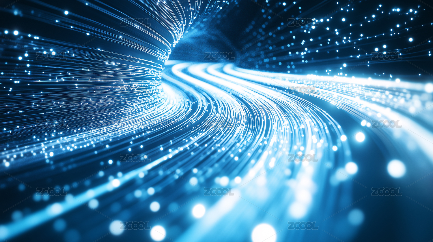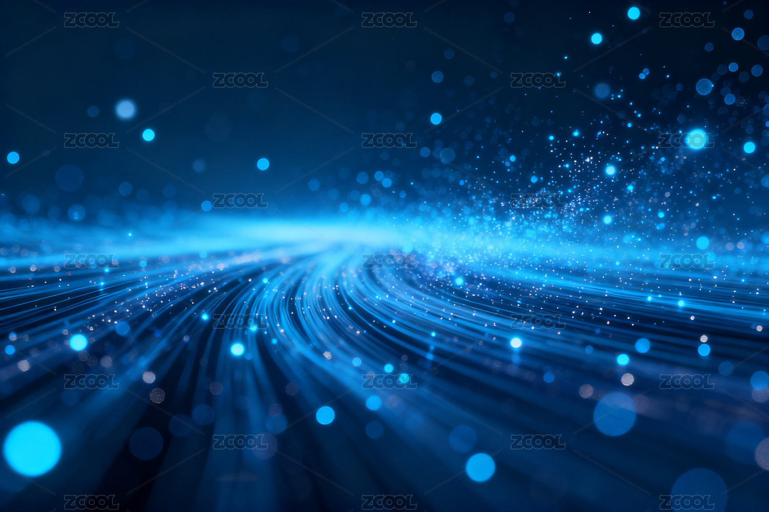 蓝色能量粒子隧道模糊散景发光明亮抽象背景
