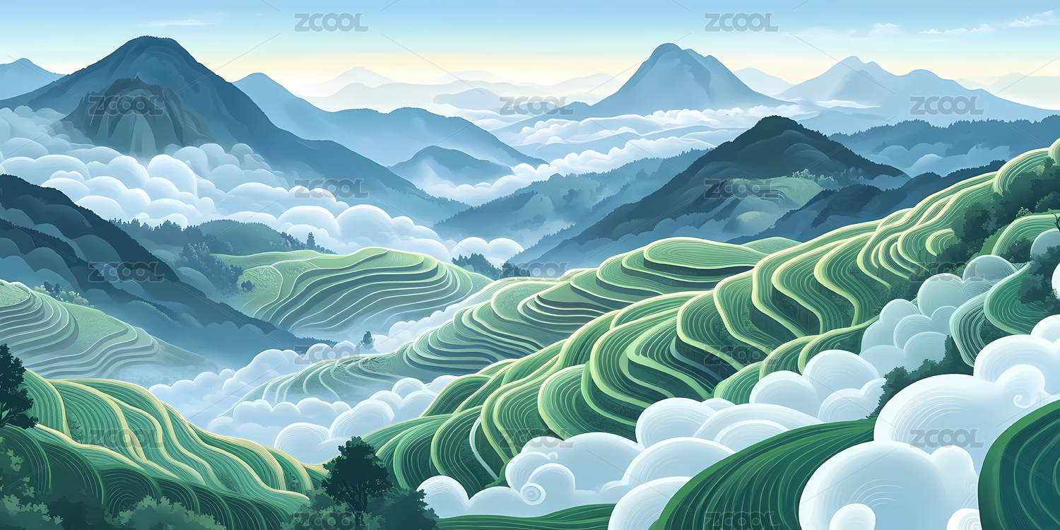 自然,艺术,绘画,美丽,宁静,插画,绿色,风景,山脉,景色