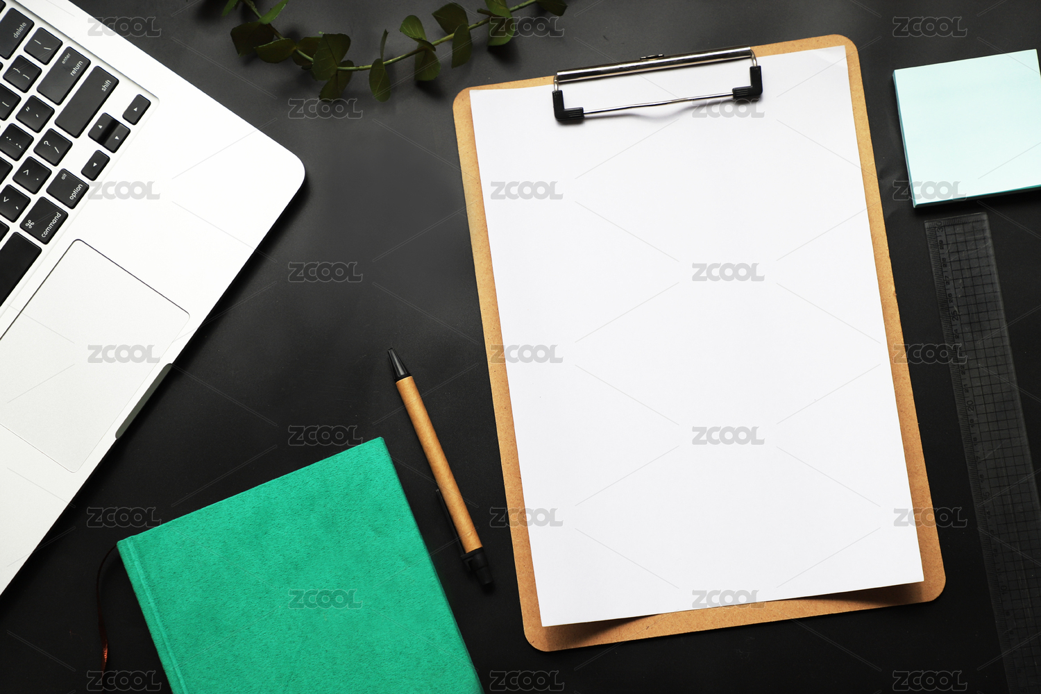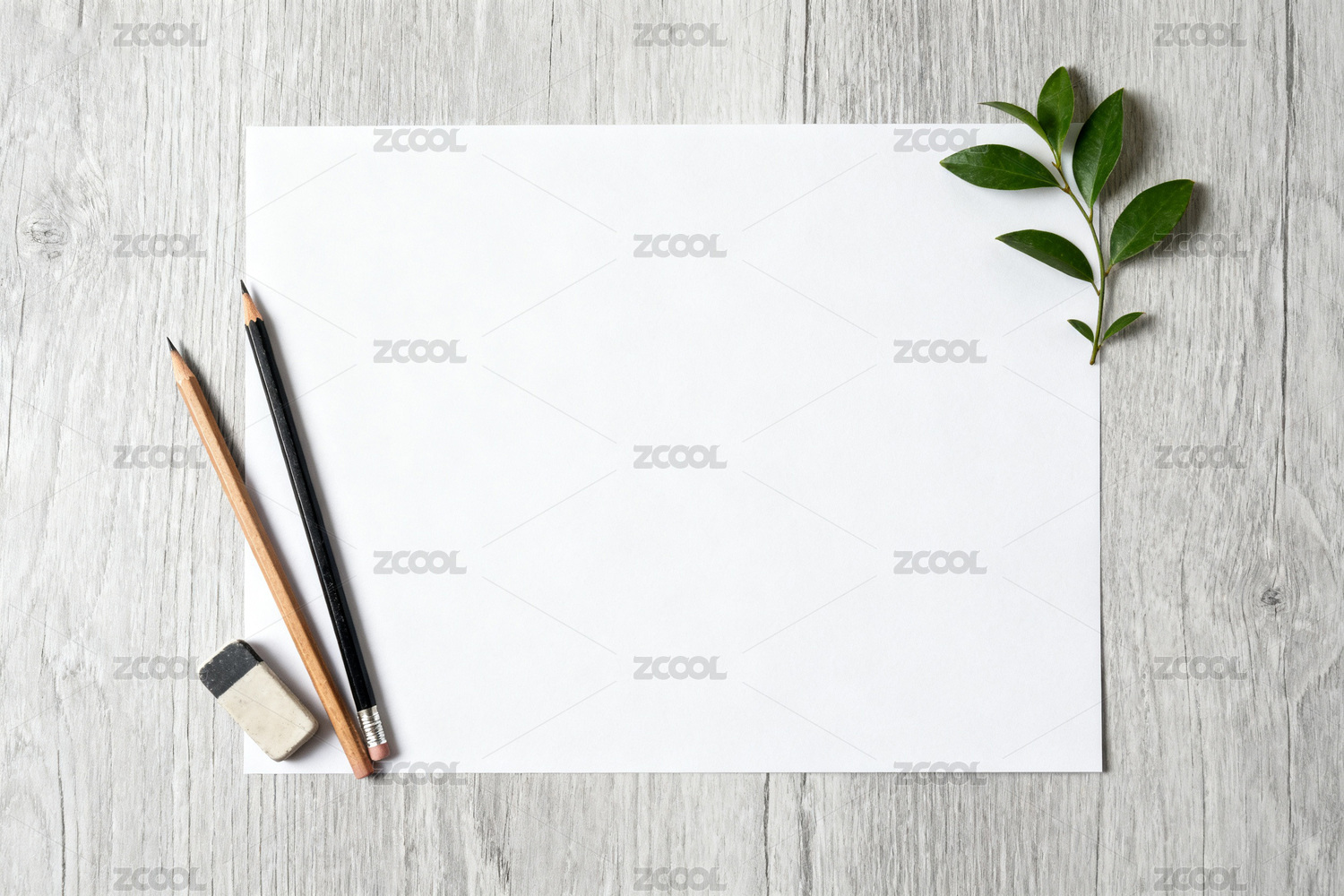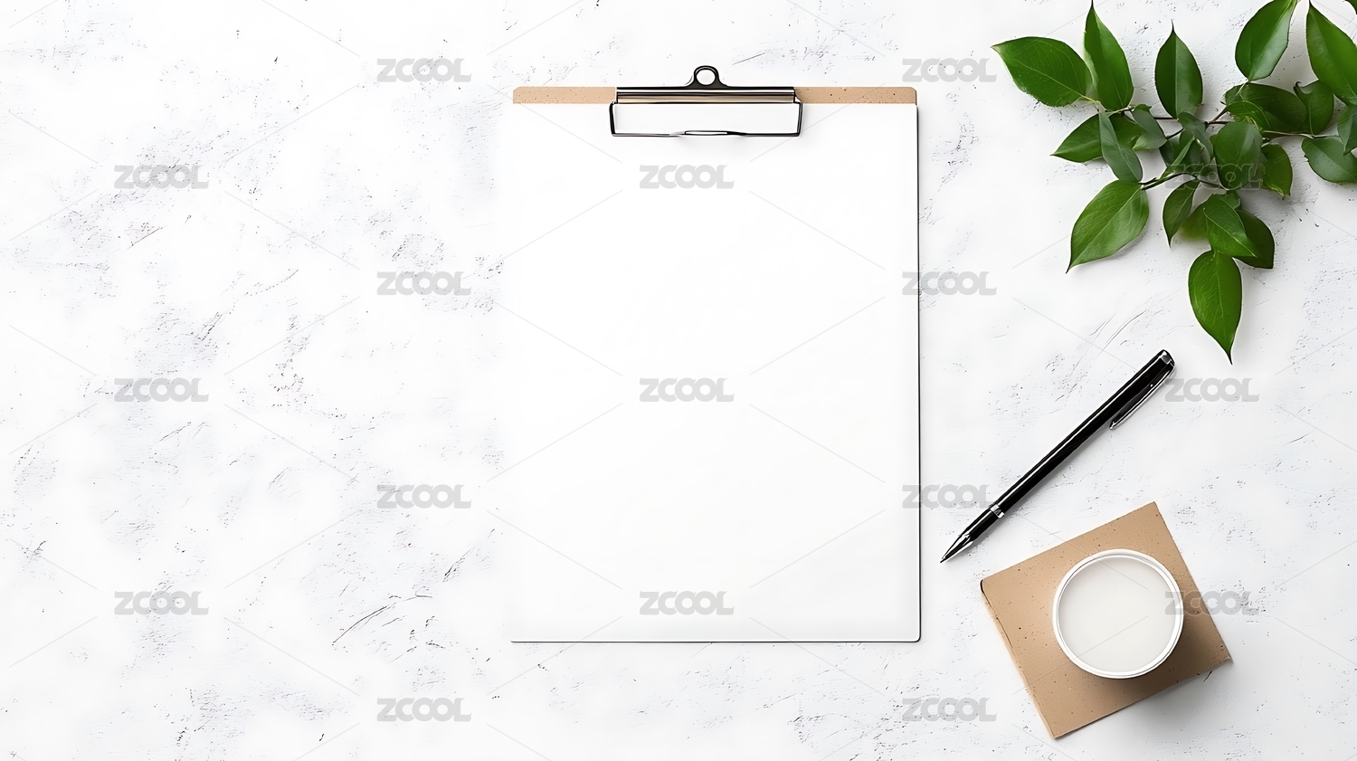 翻开的笔记本放在绿色枝叶中间,白色背景