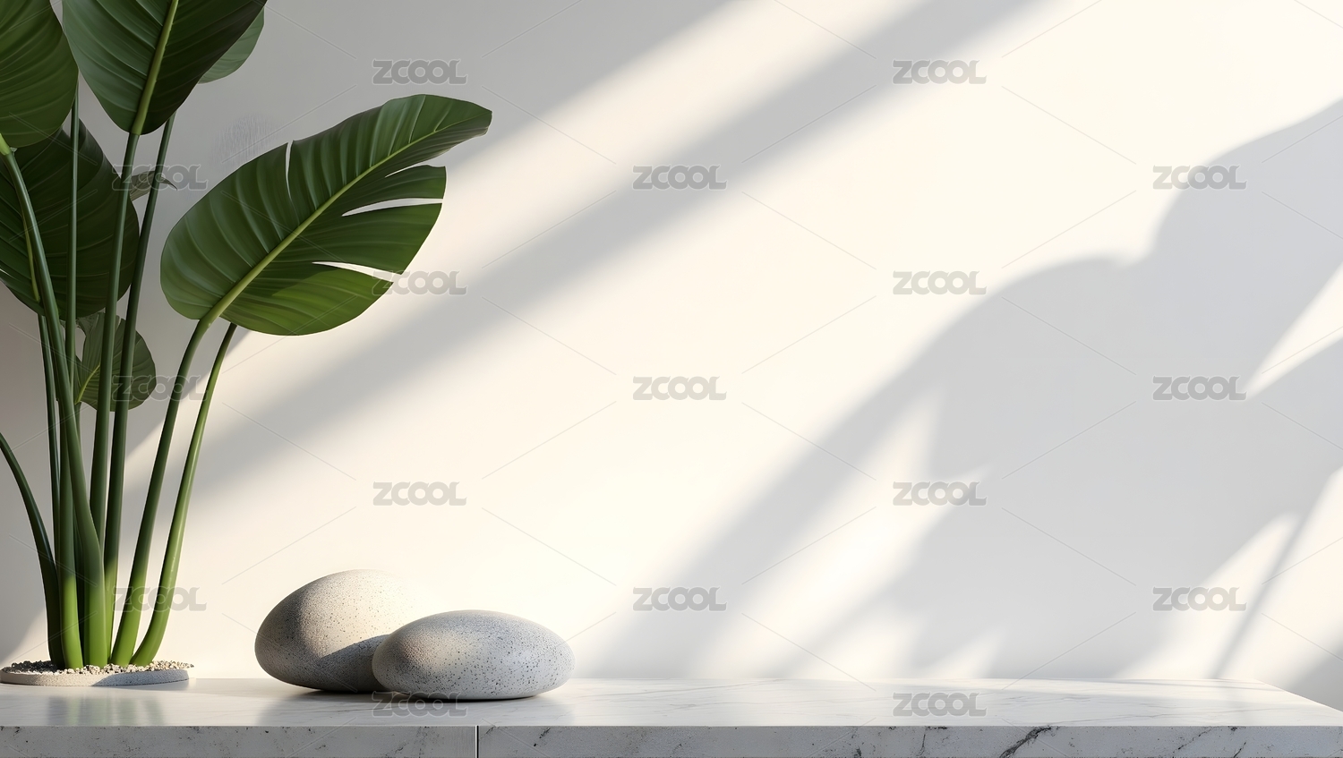 简约绿植与石头光影