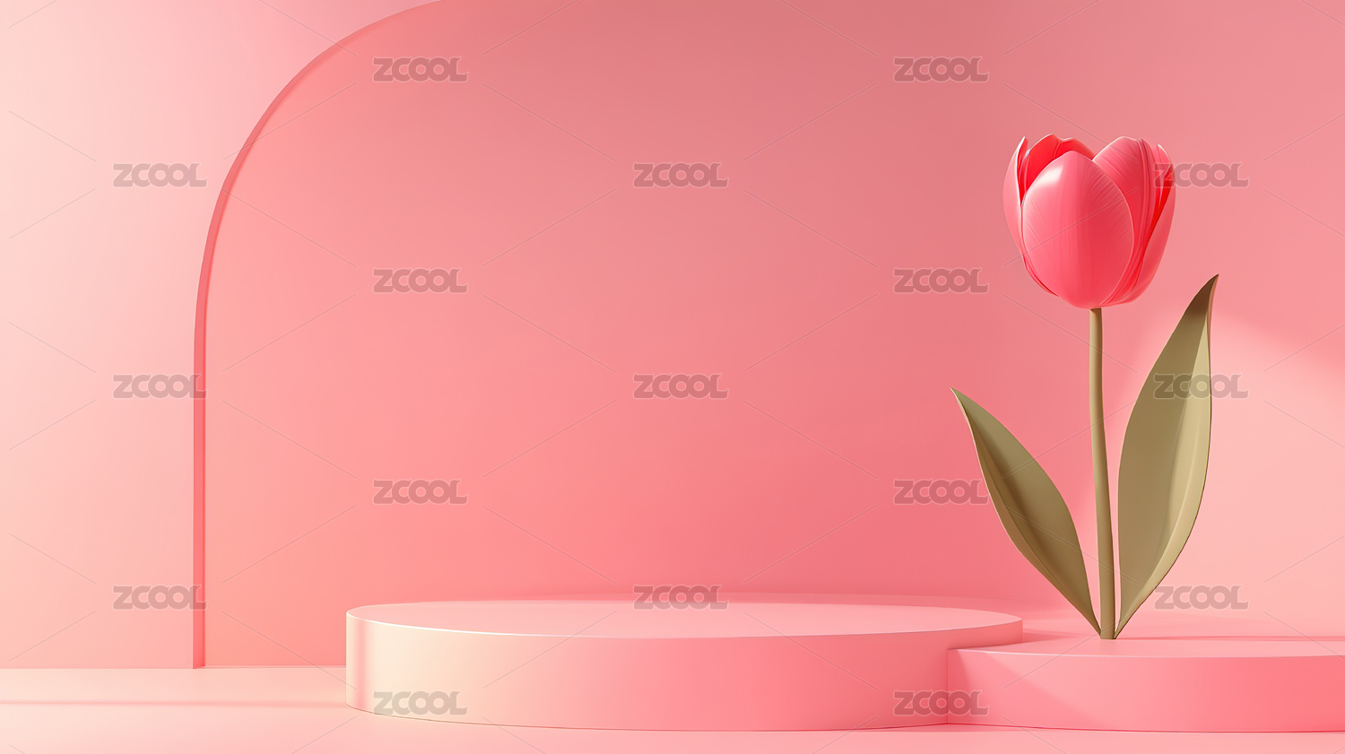 3D粉色室内郁金香产品展台背景