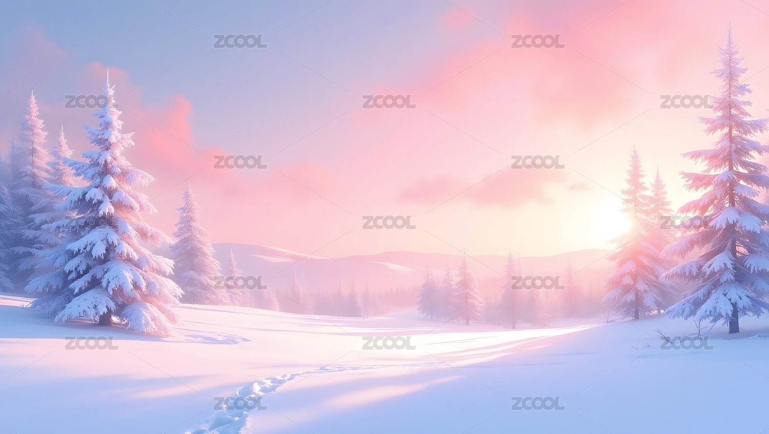 雪景,松树,山脉,道路,插画,冬日,自然,风景,背景,宁静