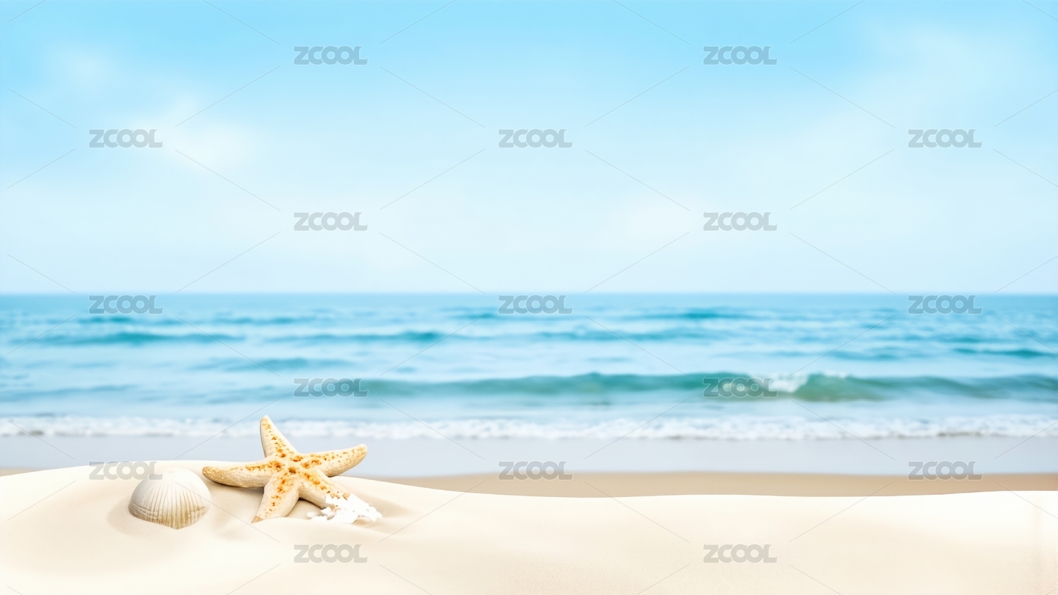 沙滩,沙粒,海星,波纹,贝壳,阳光,蓝天,海浪,海岸,浪花