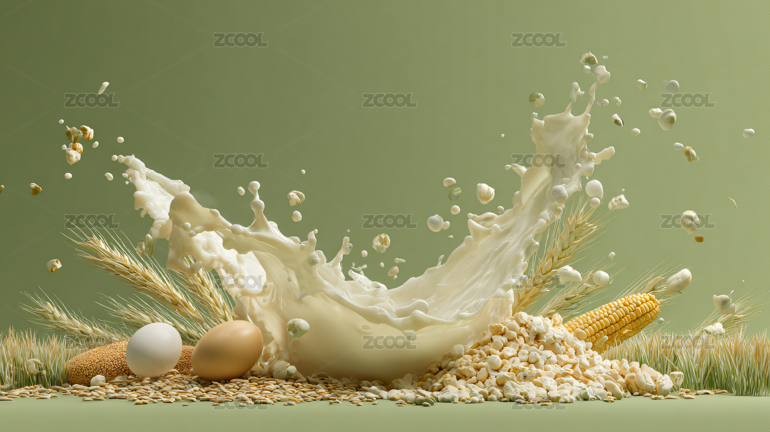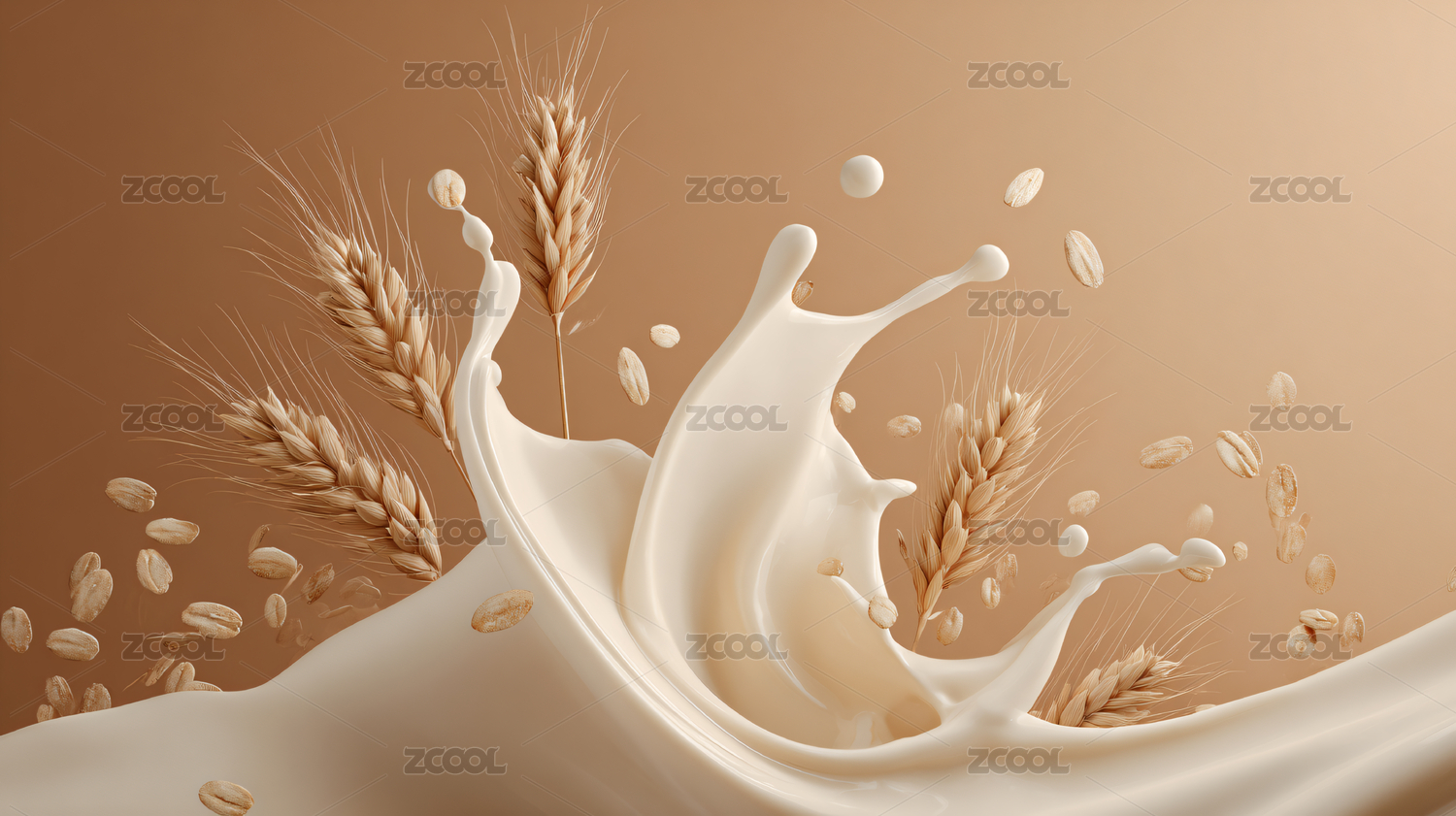 燕麦奶,飞溅,麦穗,奶液,燕麦,谷物,白色,动感,健康,饮品