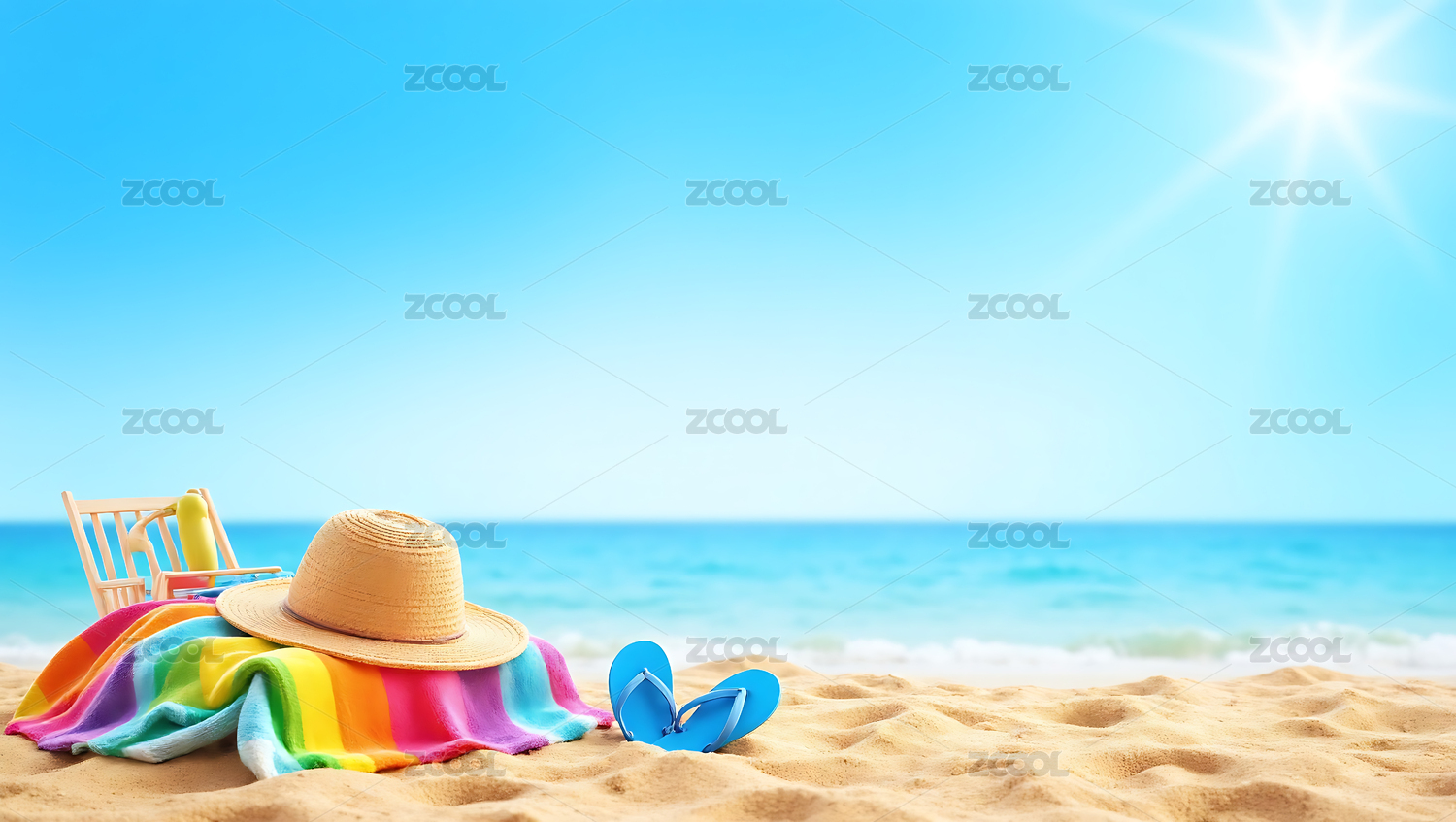沙滩,拖鞋,贝壳,毛巾,阳光,夏季,休闲,海边,自然,背景