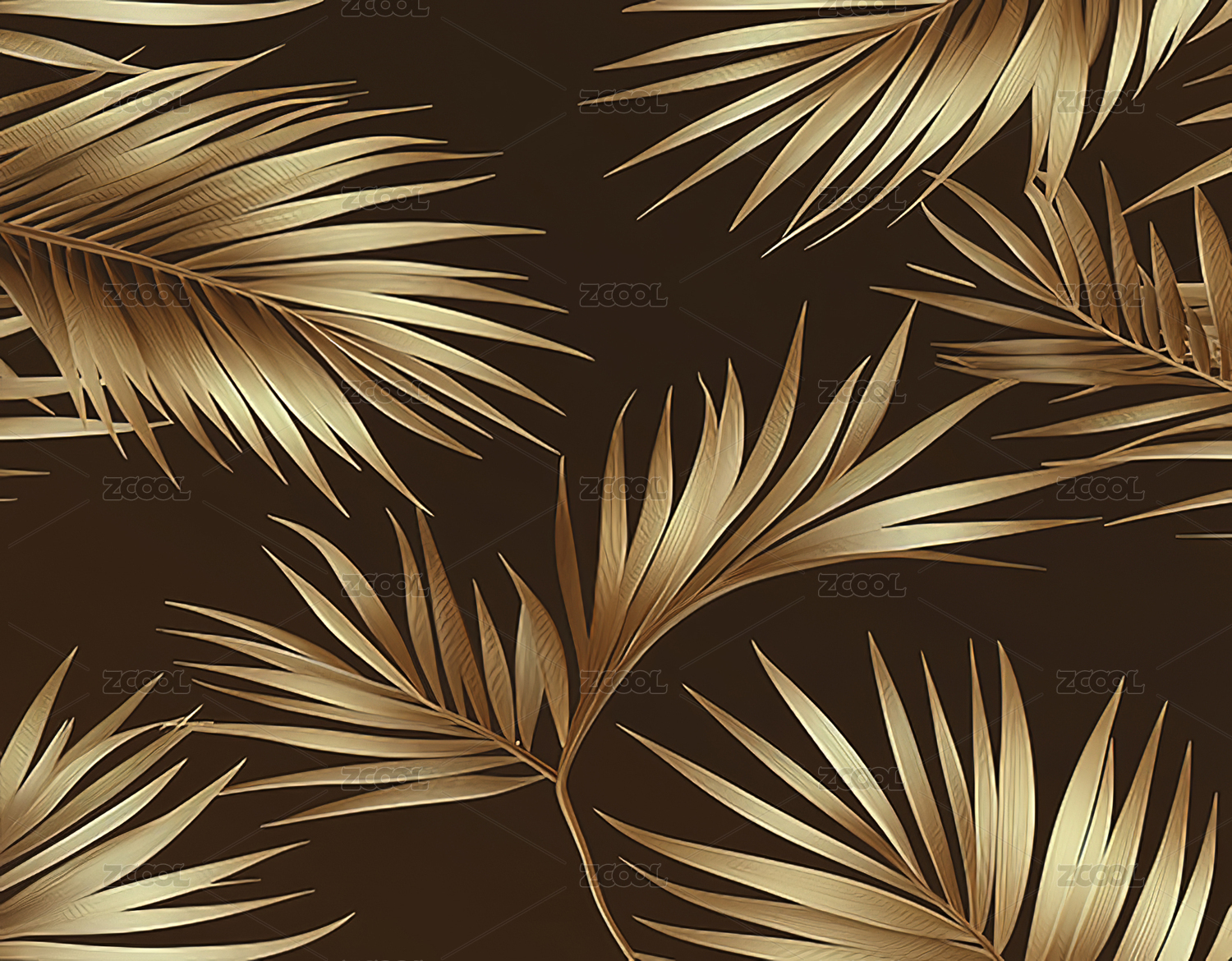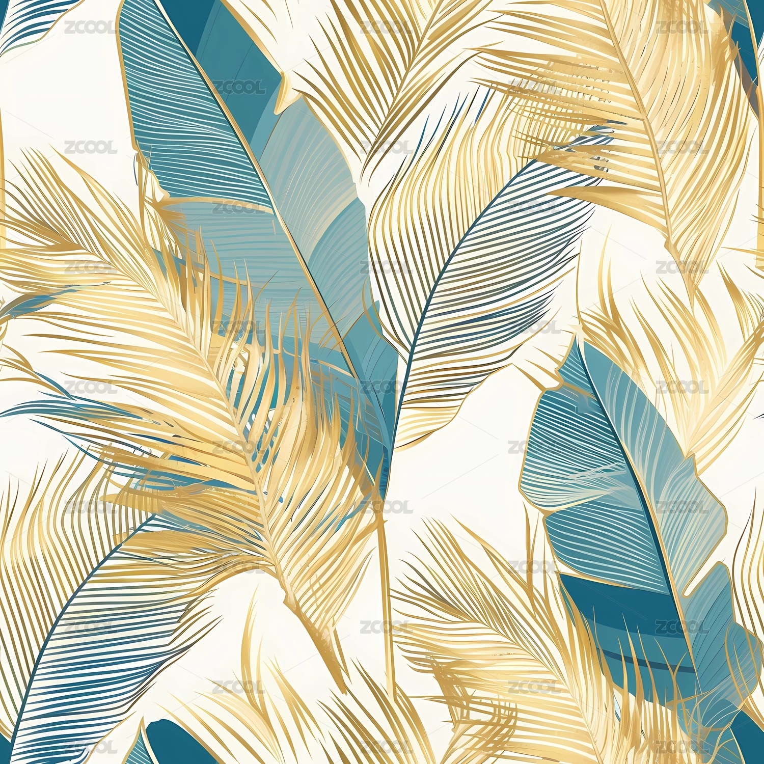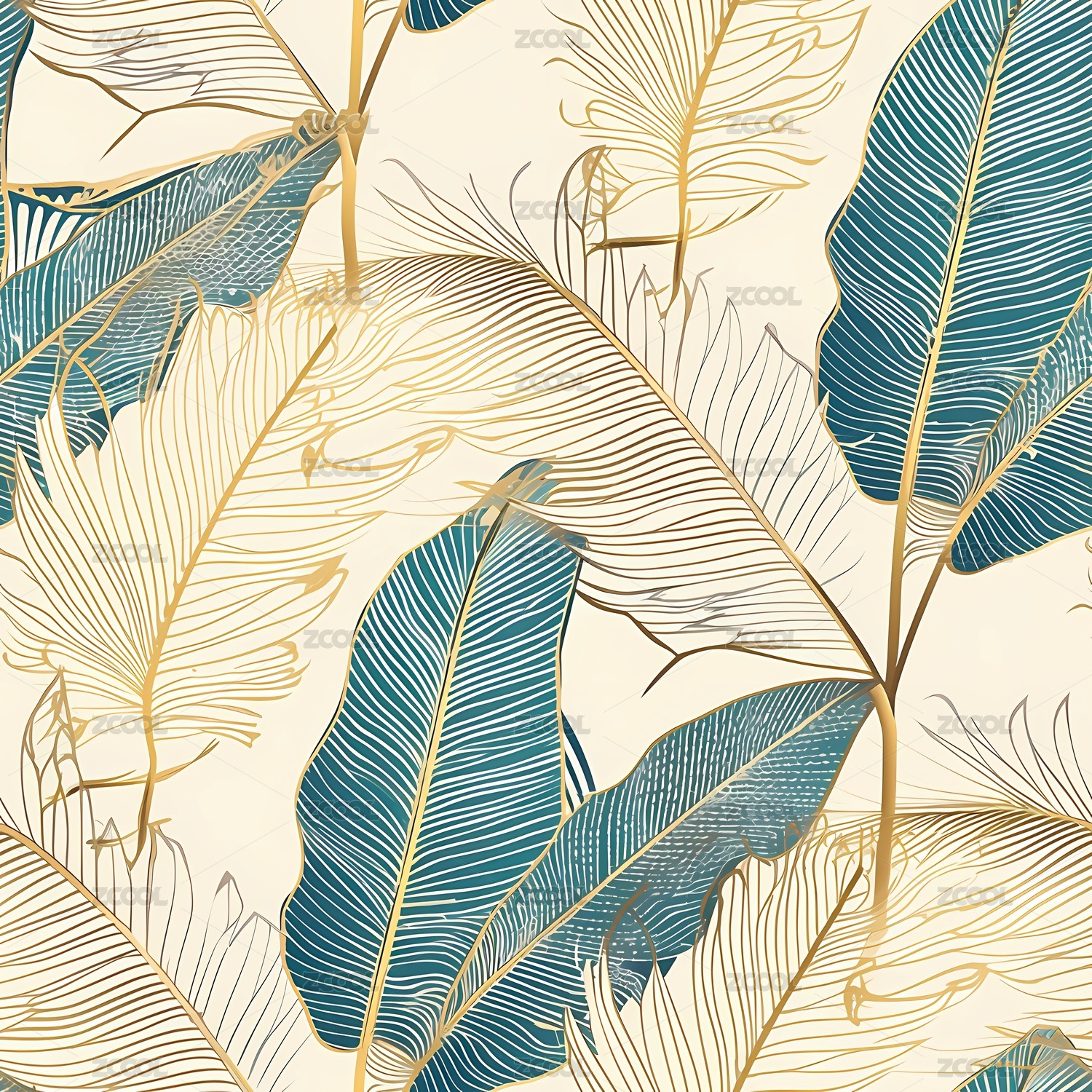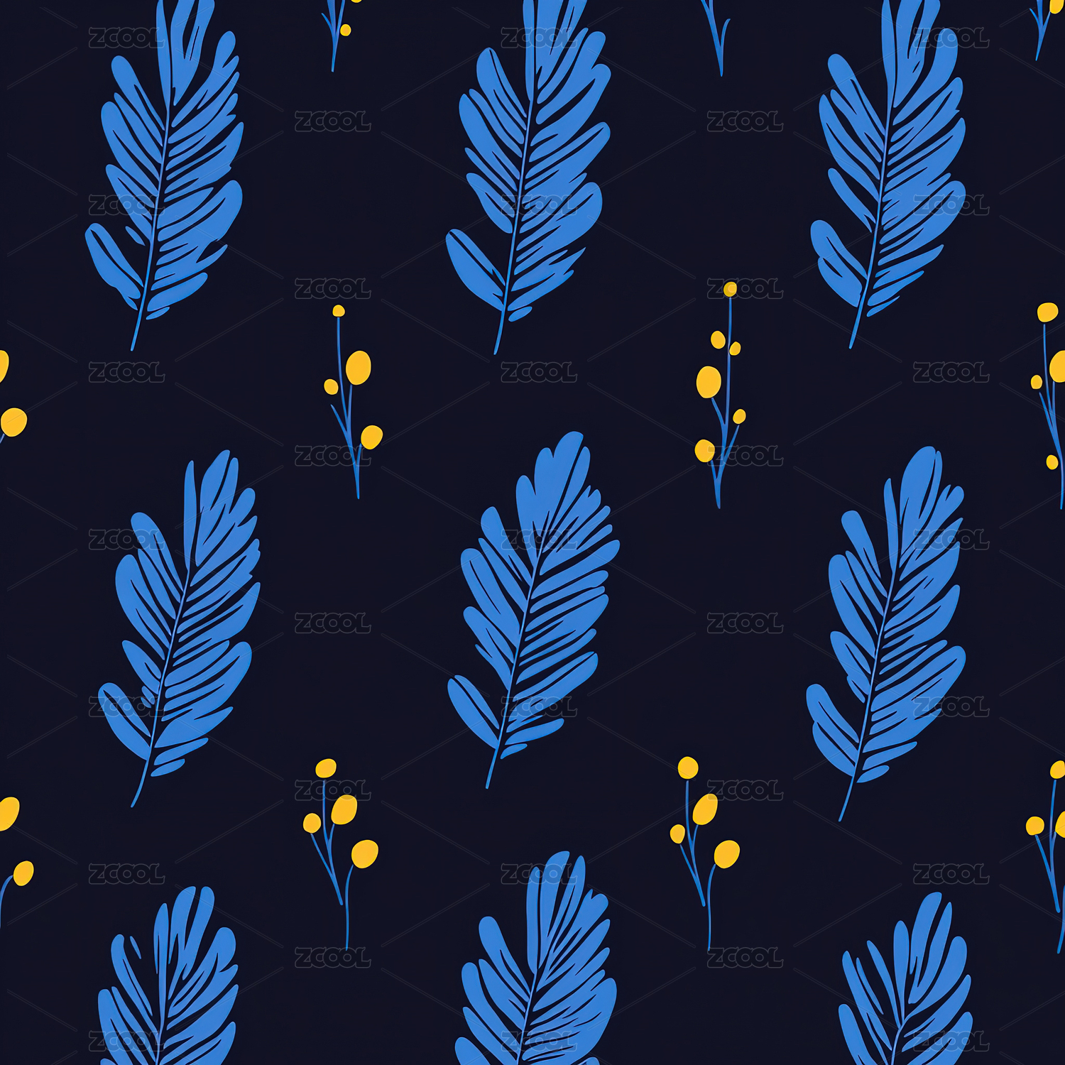 蓝底手绘几何羽毛叶子抽象家纺包装图案