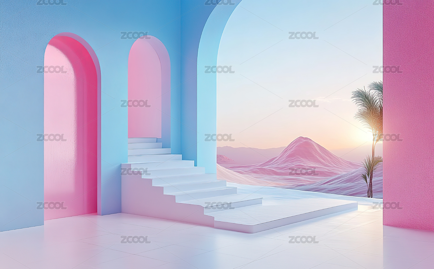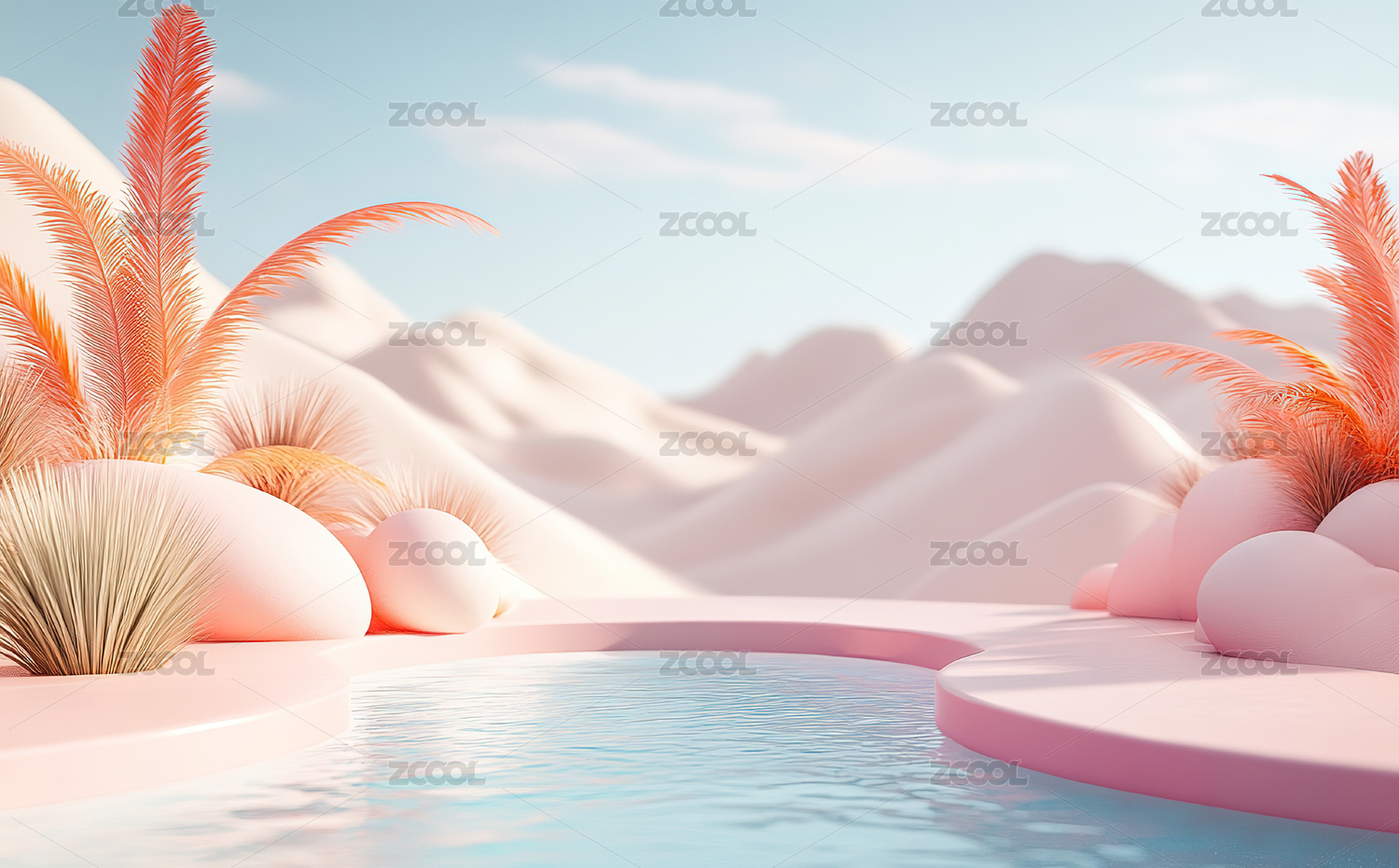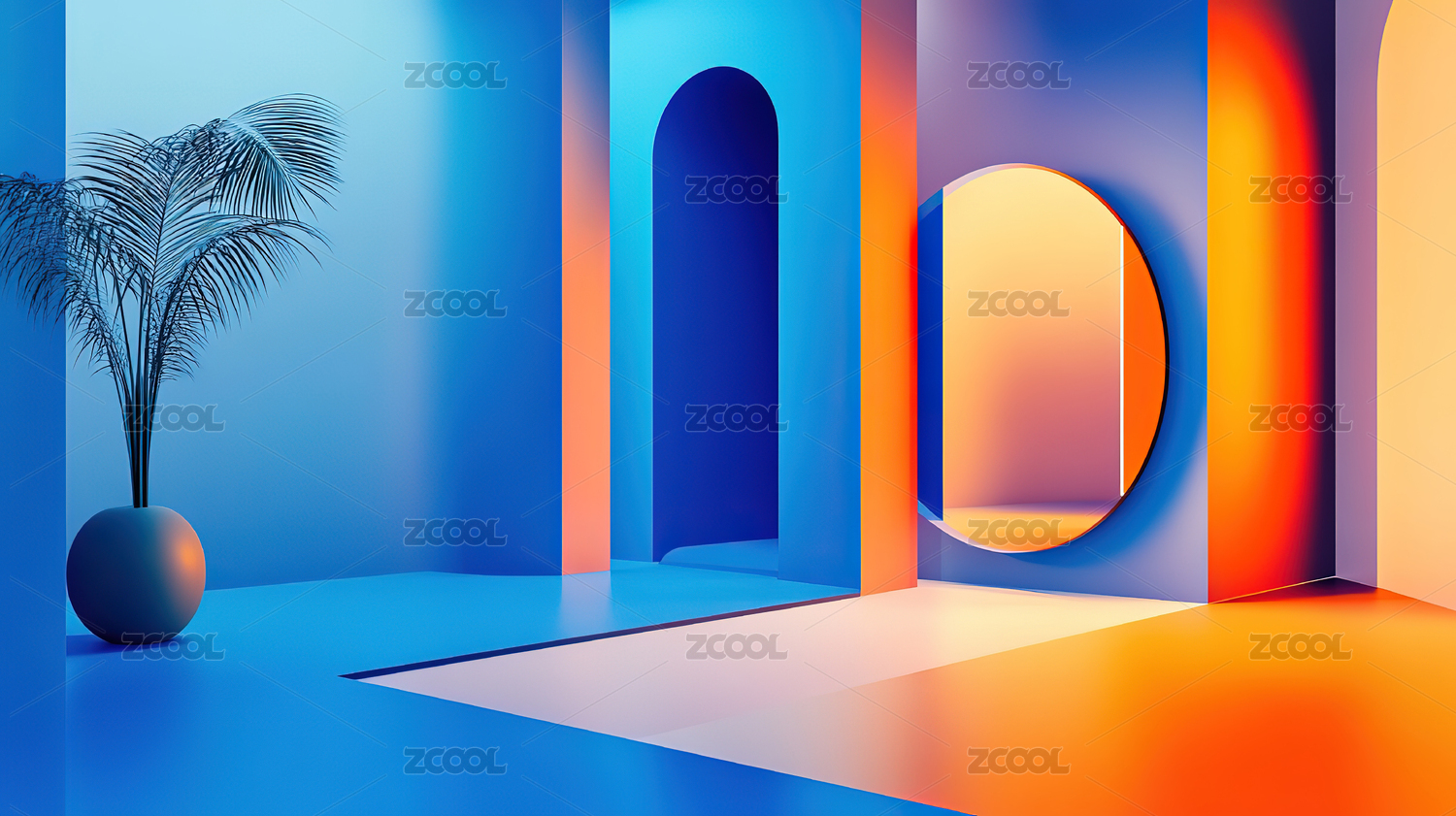海滨,几何,场景,插画,椰树,色彩,简约,创意,夏日,度假