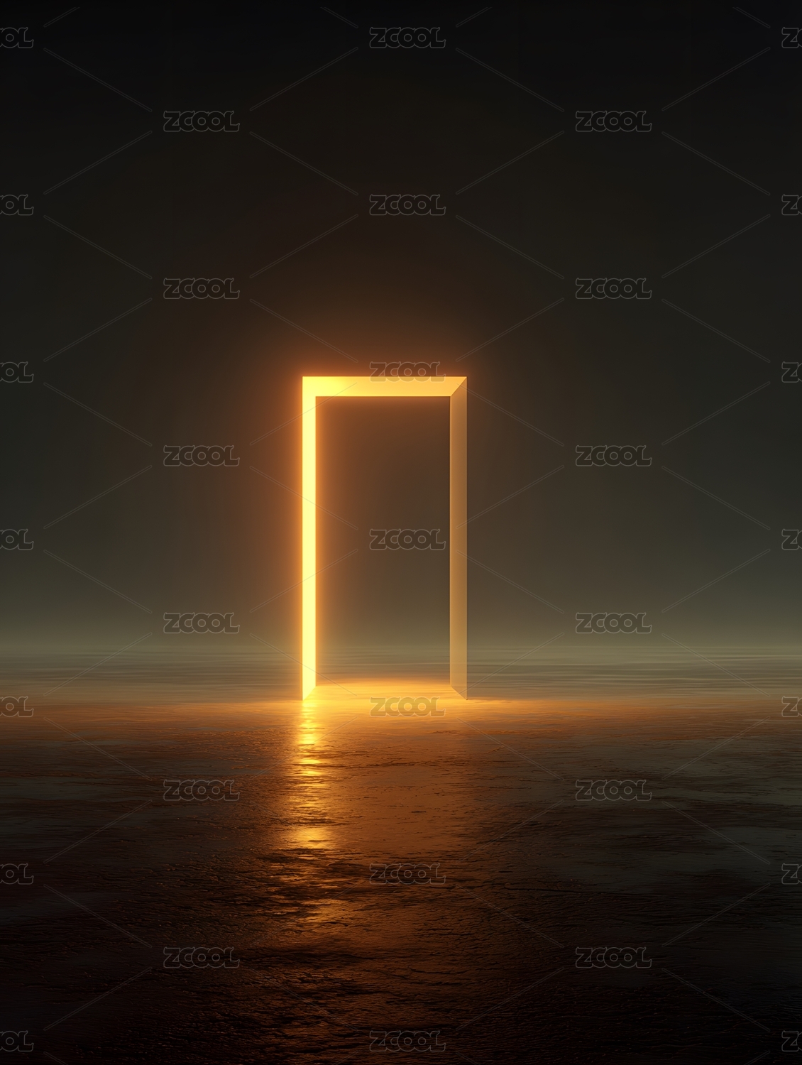 黑暗,神秘,空间,反射,氛围,橙色,雾气,地面,未来感,光柱