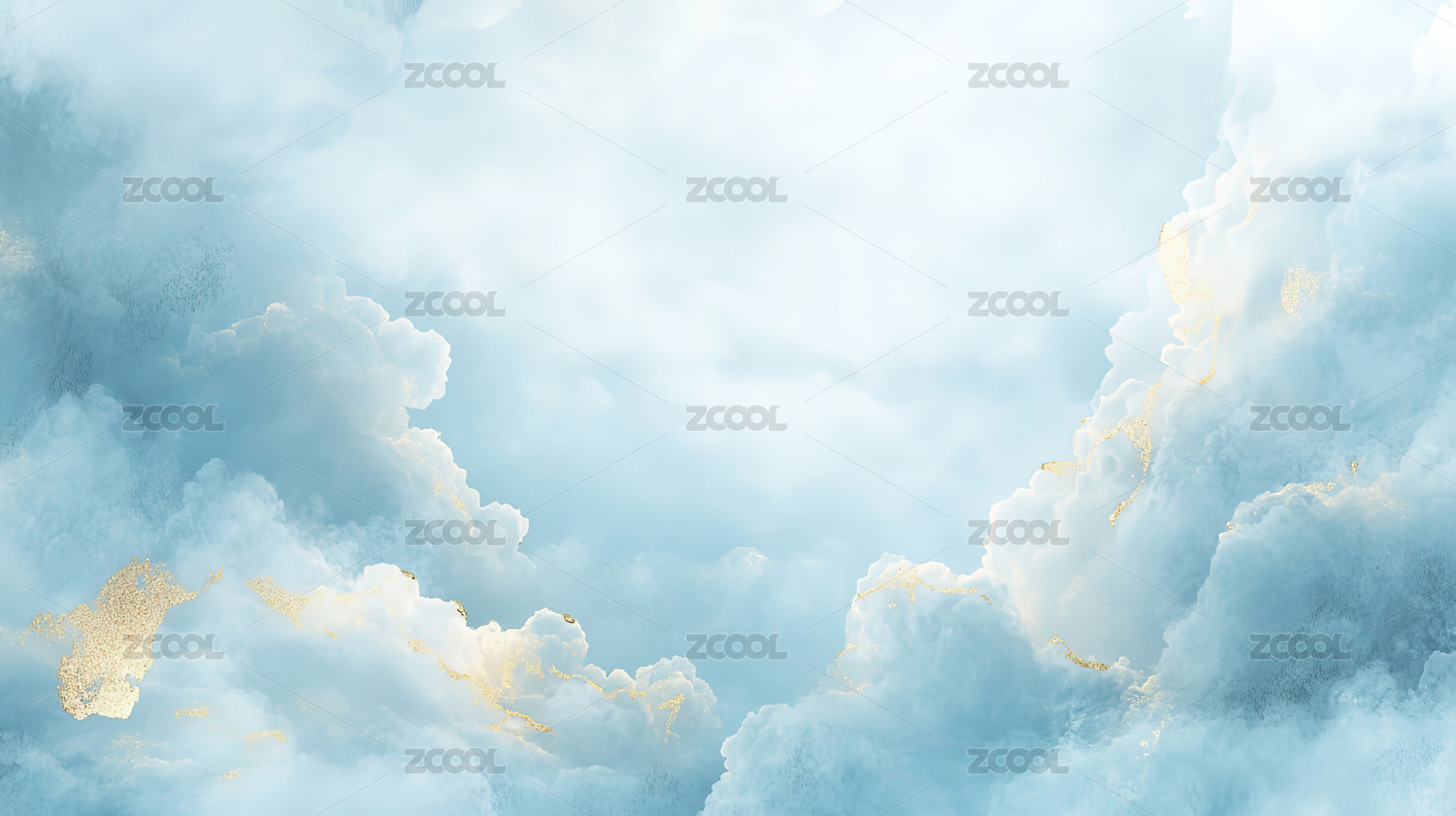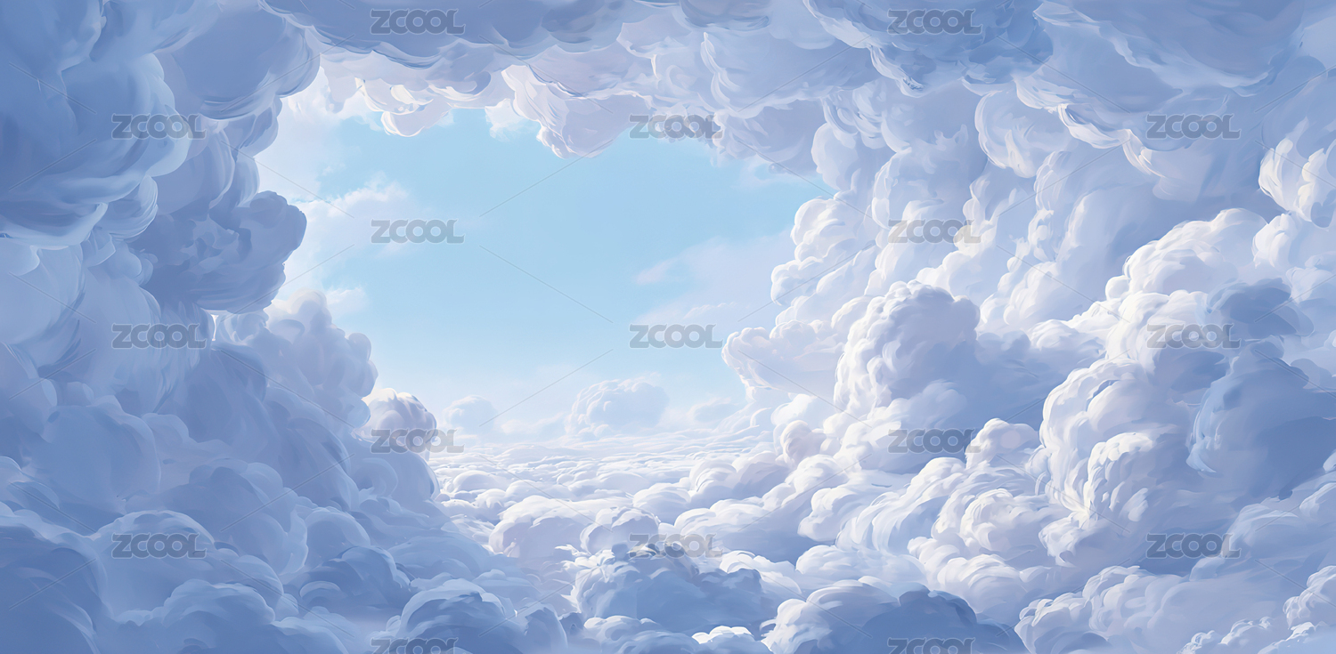 干净蓝天美丽白云抽象PPT海报主视觉背景