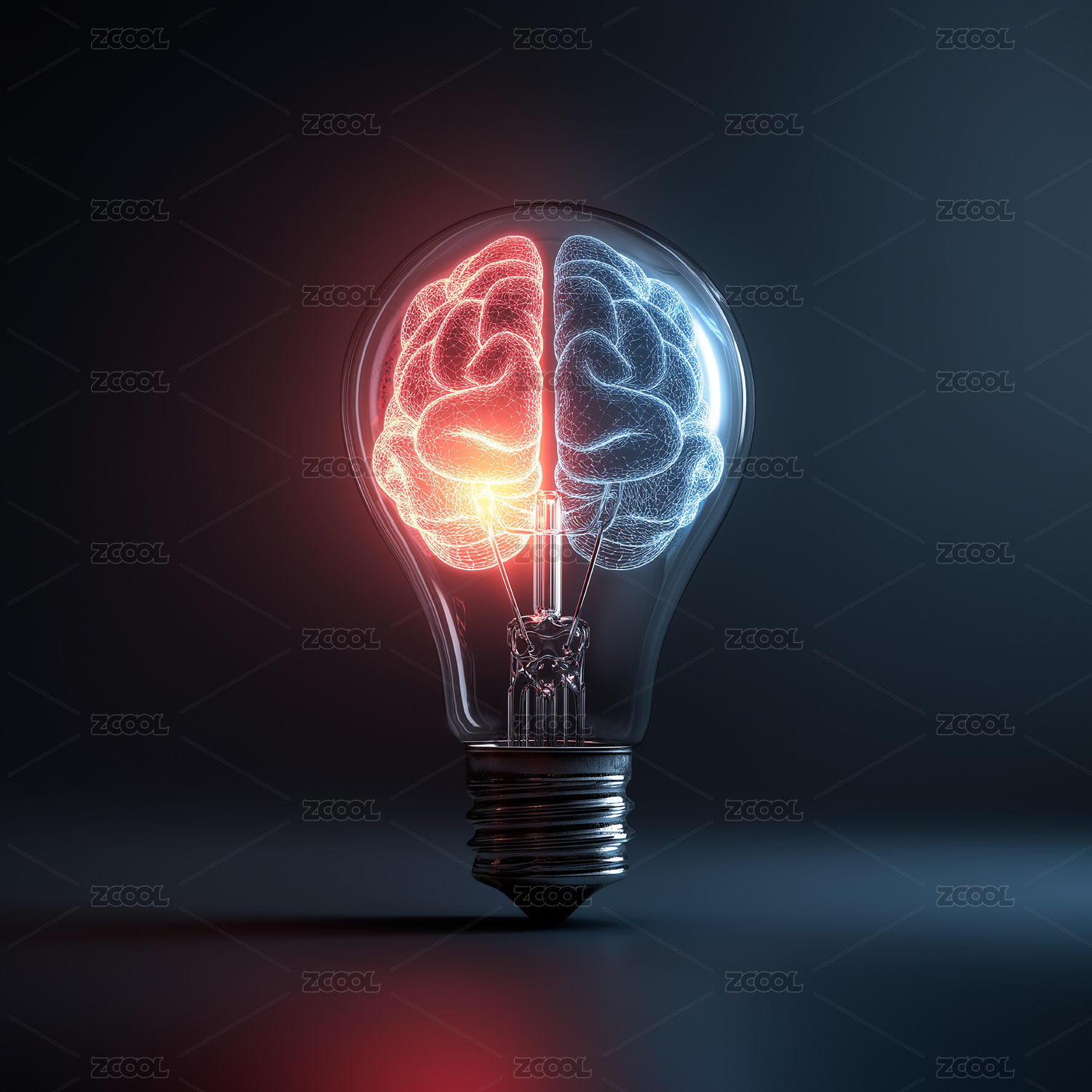 灯泡内分色大脑呈现创意科技的装饰视觉